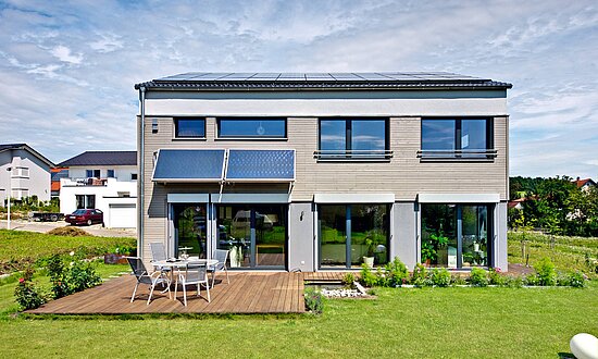 Nachhaltigkeit ist bei WeberHaus schon im Standard enthalten: Die hochdämmende Gebäudehülle ÖvoNatur Ther, dreifach verglaste Fenster, eine Photovoltaikanlage, ein Batteriespeicher und die Frischluft-Wärmetechnik gehören zur Grundausstattung. Das Holz, das als Basis für alle Weber-Häuser dient, kommt dabei garantiert aus verantwortungsvoller und regionaler Forstwirtschaft.