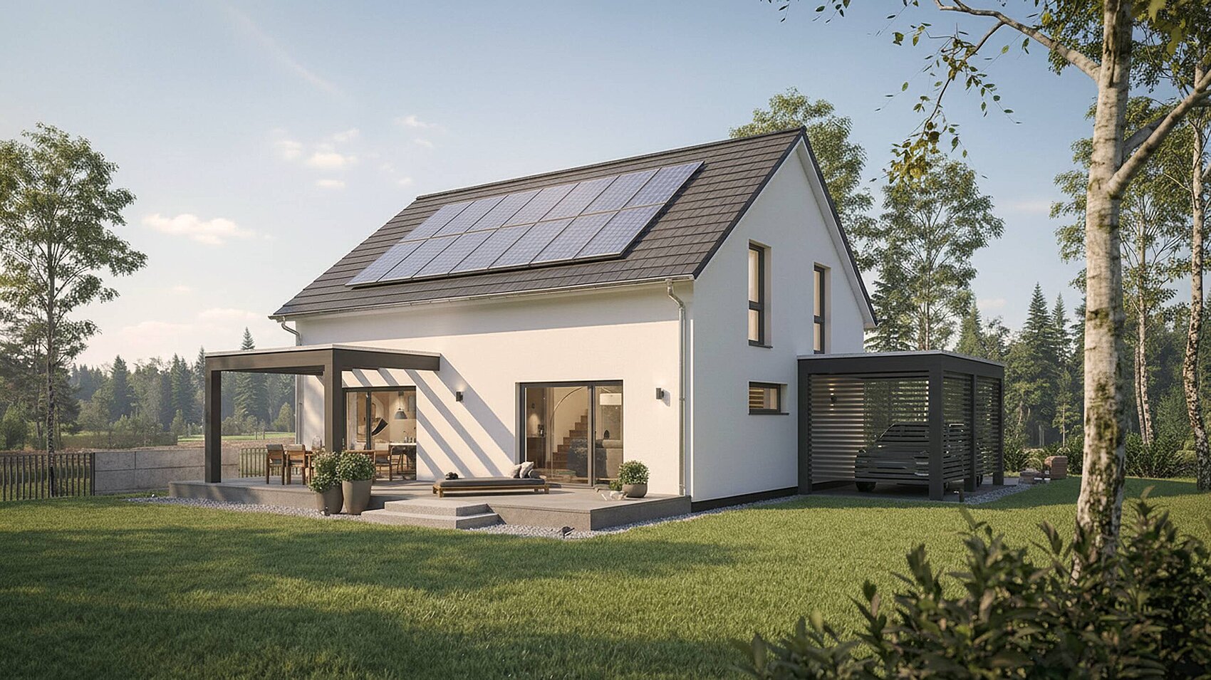 Nachhaltigkeit ist bei WeberHaus schon im Standard enthalten: Die hochdämmende Gebäudehülle ÖvoNatur Ther, dreifach verglaste Fenster, eine Photovoltaikanlage, ein Batteriespeicher und die Frischluft-Wärmetechnik gehören zur Grundausstattung. Das Holz, das als Basis für alle Weber-Häuser dient, kommt dabei garantiert aus verantwortungsvoller und regionaler Forstwirtschaft.