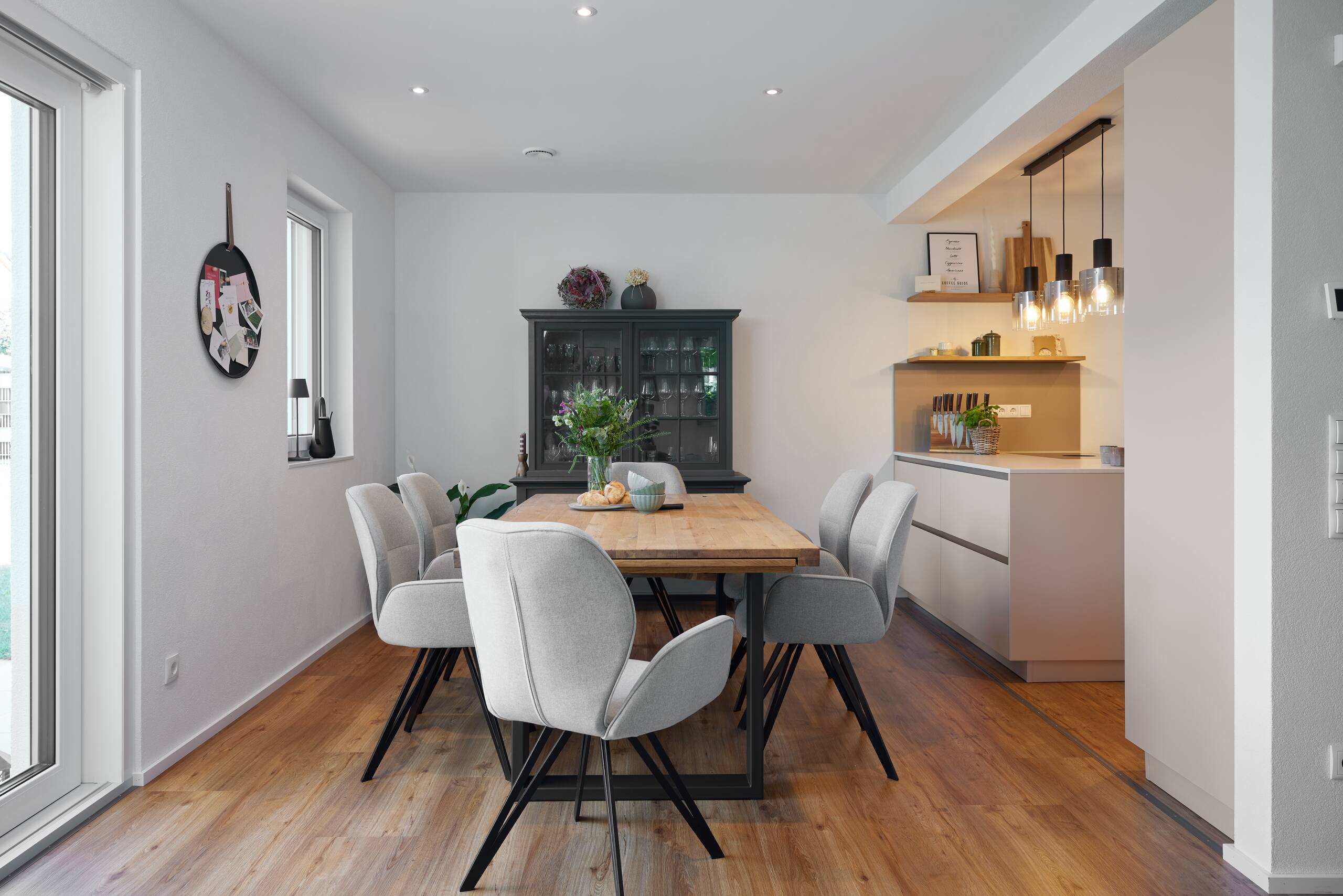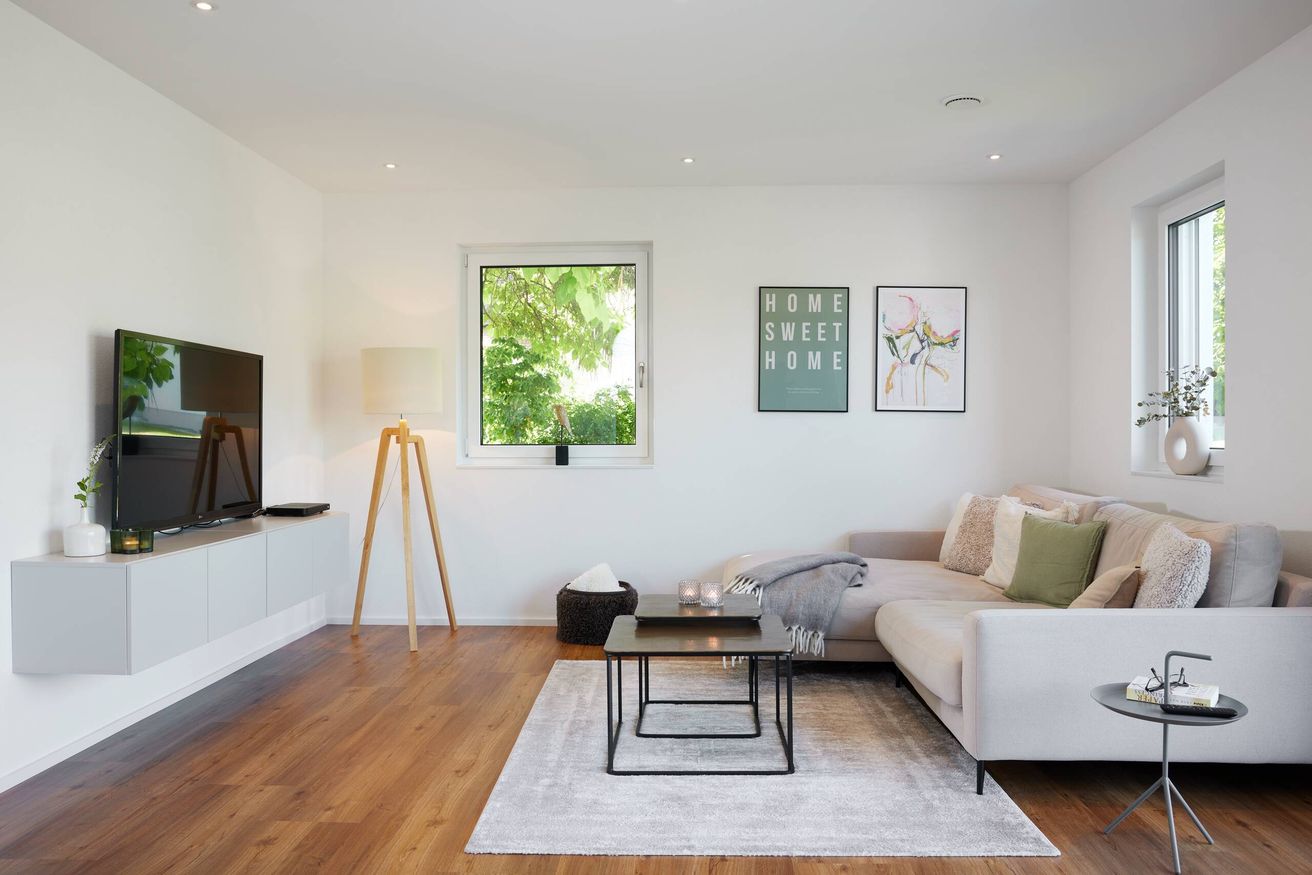 Rund 140 Quadratmeter Wohnfläche bietet das neue Haus aus der Baureihe Balance 100 auf zwei Vollgeschossen, genug Platz für die Gestaltung persönlicher Wohnträume. Je nach Wunsch kann dieses Haus selbstverständlich mit allen Annehmlichkeiten ausgeführt werden, worauf die künftigen Hausbesitzer Wert legen: beispielsweise eine Pergola, die praktische Garage, ein zusätzliches Geschoss durch Unterkellerung oder eine Photovoltaik-Anlage auf dem Dach.