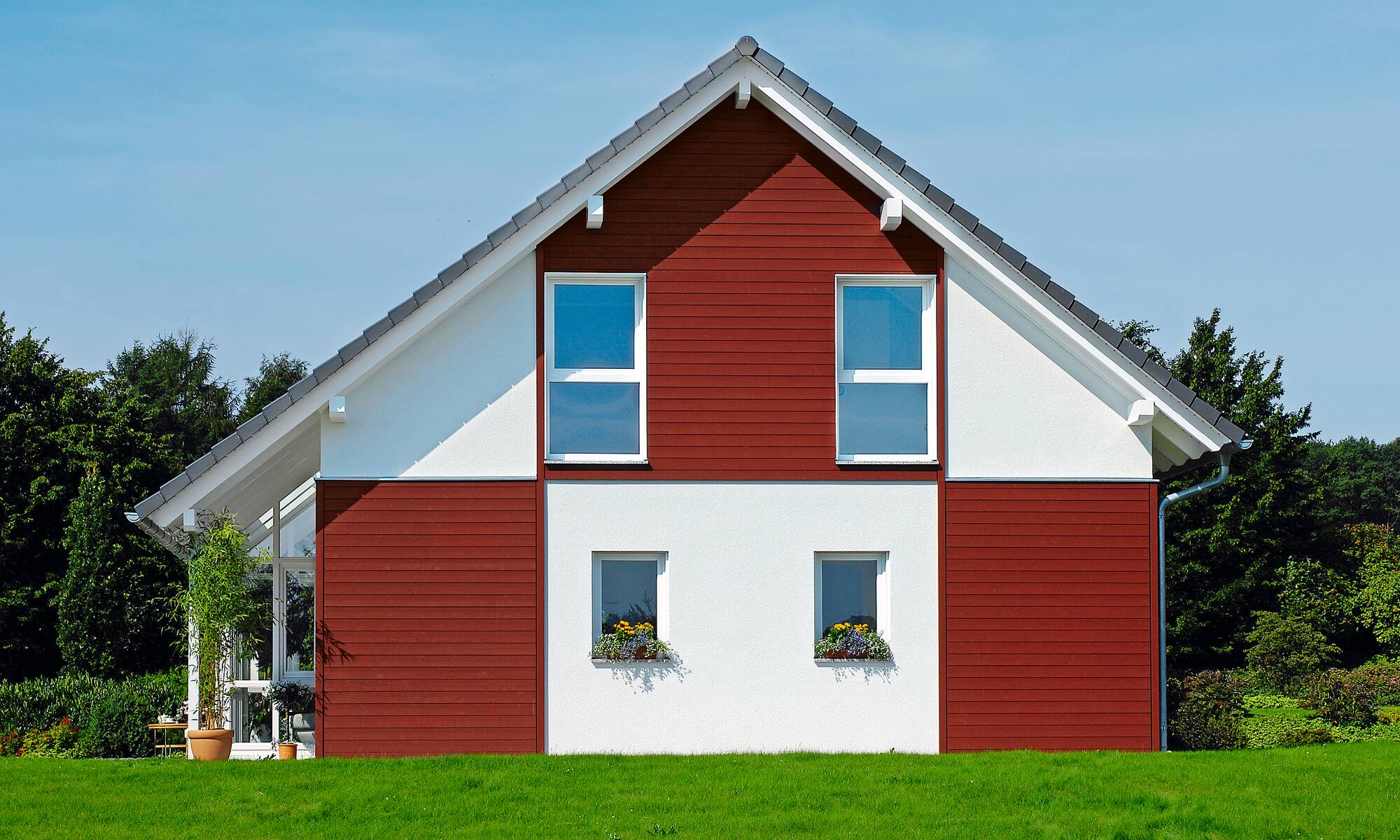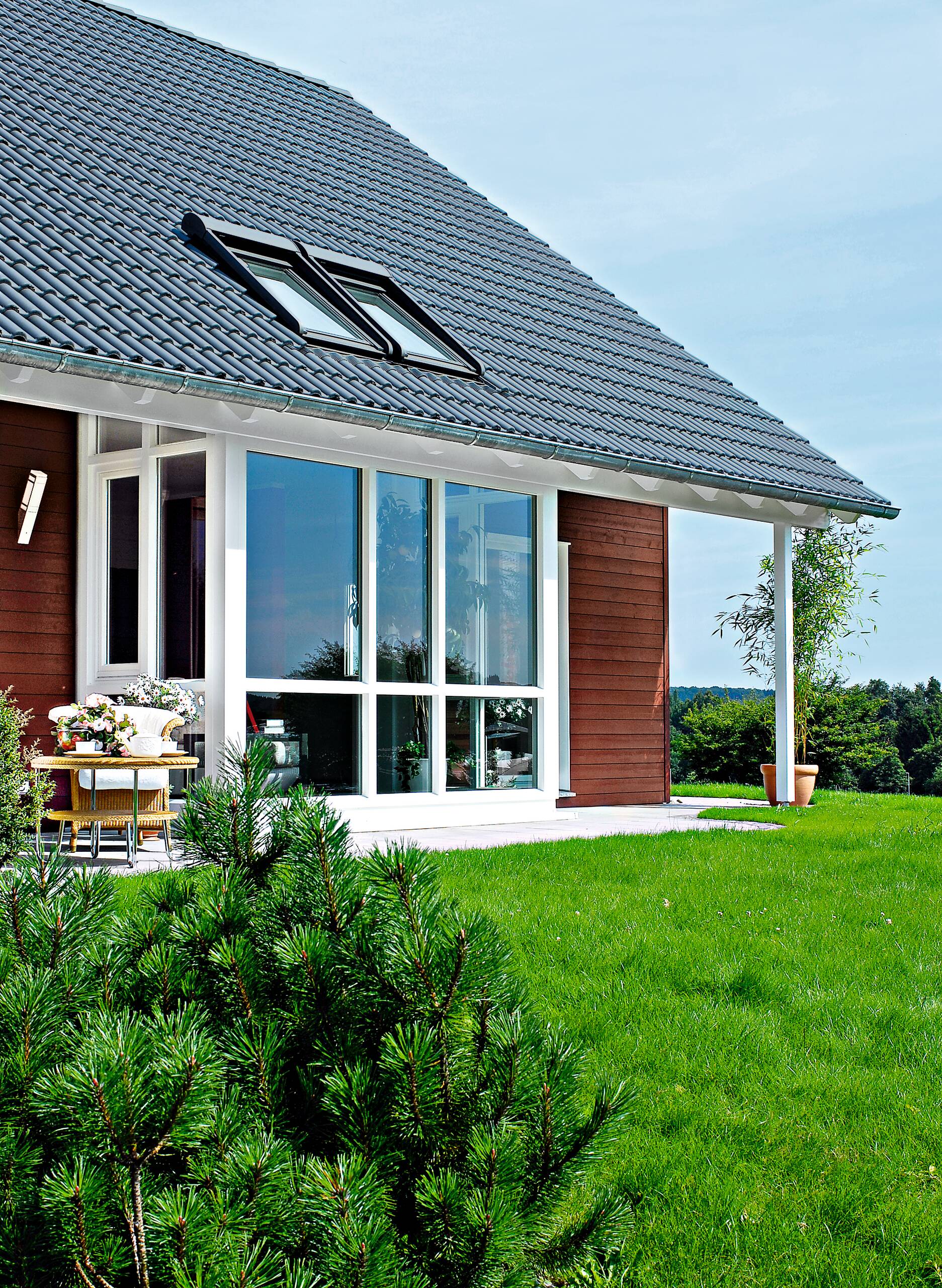 Einzigartig wird dieses WeberHaus durch die vielen Möglichkeiten der Fassadengestaltung. Durch die raffinierte Holzverschalung z.B. in attraktivem Oxidrot kombiniert mit weißer Putzfassade wird das Haus garantiert zum Blickfang. Aber nicht nur Außengestaltung und Architektur mit zwei überdachten Terrassen und einem mittig platzierten Wintergarten, der optional erhältlich ist, überzeugen. Auch beim Betreten des Hauses kommt man ins Staunen, denn das Haus entpuppt sich als wahres Raumwunder.