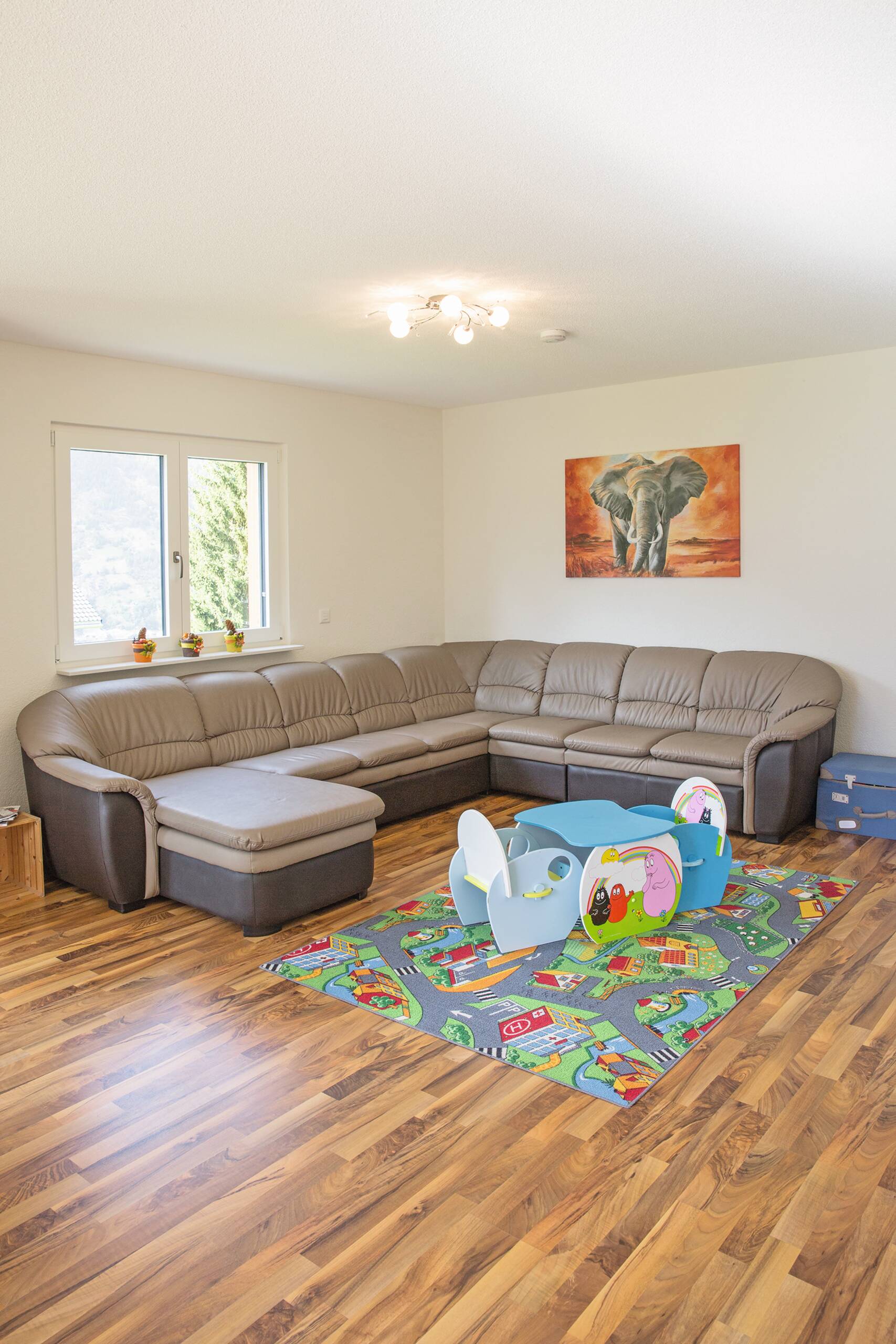 Ein Traumhaus in einer Traumgegend hat unsere Schweizer Baufamilie in den Walliser Bergen verwirklicht. Mit dem Materialmix an der Fassade von Putz und Holz sowie einem dritten Giebel erhält das Haus in Anlehnung an die Baureihe „Balance“ eine individuelle Note. Einen schönen Kontrast zum Holz bildet die eher kühle Farbwahl der Dachziegel.