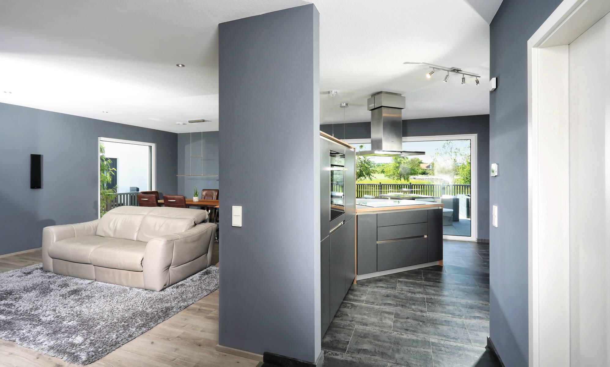 Nicht selten sind unsere Musterhäuser eine wichtige Inspirationsquelle in der Hausbau-Findungsphase. Bei diesem Bauherrenpaar aus der Bodenseeregion war das City Life in der World of Living in Rheinau-Linx der alles entscheidende Anlass, endlich zu bauen, nachdem zuerst über zehn Jahre lang Hauskataloge gewälzt worden waren. Eine Stadtvilla mit quadratischem Grundriss und cleverer Raumaufteilung - genauso sollte es werden, nur eben ganz individuell den Vorstellungen des Paares angepasst.