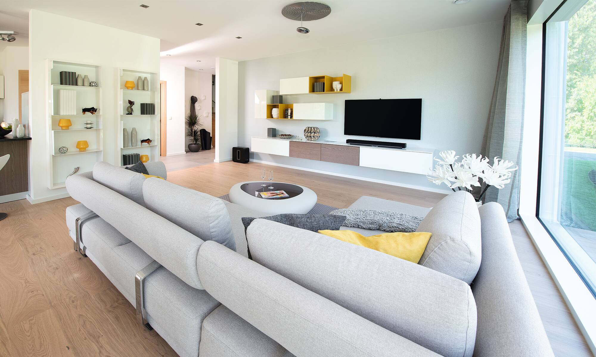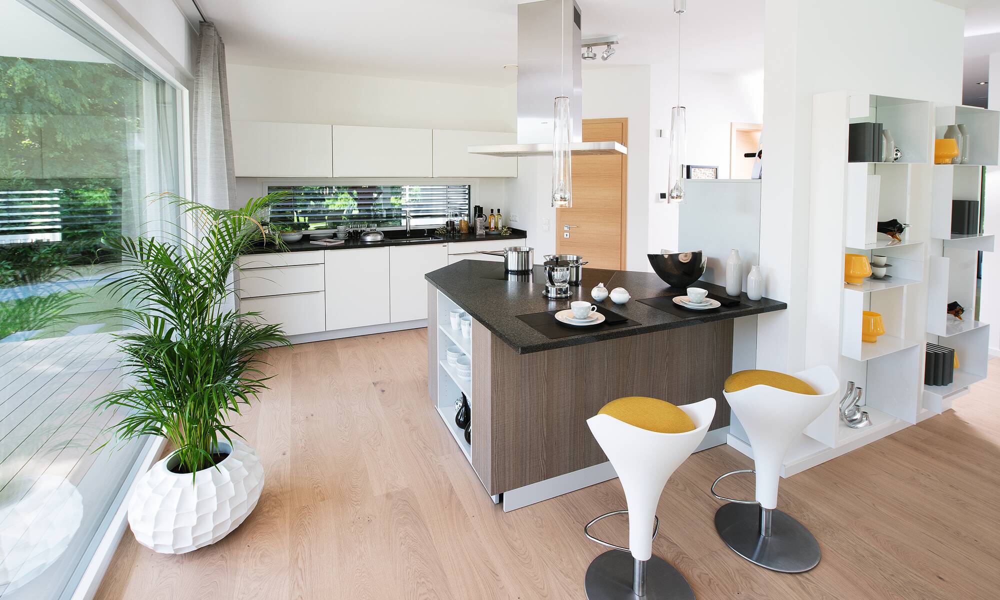 Bei diesem Hausentwurf handelt es sich um ein Passivhaus der WeberHaus-Baureihe CityLife. Das Ausstellungshaus steht in der World of Living und ist der Beweis dafür, dass Design und Energieeffizienz einander nicht ausschließen. Basis für das Passivhaus ist die ökologische Gebäudehülle ÖvoNatur Therm, die durch eine innovative Haustechnik und ein modernes Haus-Management-System ergänzt wird. Attika und Flachdach verleihen dem Stadthaus einen stilvollen Bauhaus-Charakter. Beide Vollgeschosse bestechen mit lichtdurchfluteter Architektur und versprechen über 180 Quadratmeter Wohnvergnügen.