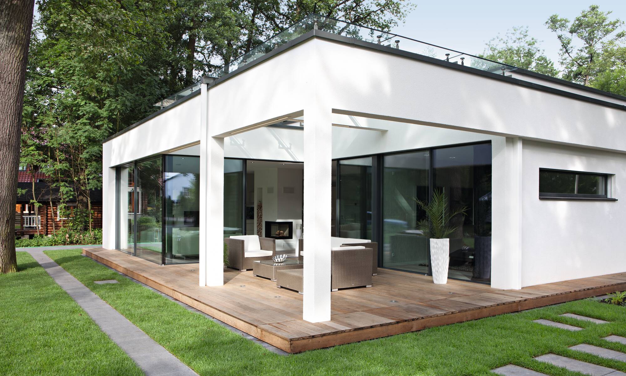 Dieser schicke Bungalow ist ein echtes Traumhaus für alle, die Wert auf Komfort legen und heute schon an morgen denken. Denn hierbei handelt es sich um einen frei geplanten Hausentwurf von dem Wohnkonzept WeberHaus ebenLeben, das Funktionalität und Design perfekt auf einer Wohnebene vereint. Klare Linien, fließende Übergänge sowie großzügige Bewegungsflächen sorgen für Barrierefreiheit und verleihen jedem Raum ein Gefühl von Freiheit. Optisch beeindruckt der moderne Winkel-Bungalow mit rahmenlosen sowie bodentiefen Panoramafenstern, schickem Flachdach und angesagter Bauhaus-Architektur.