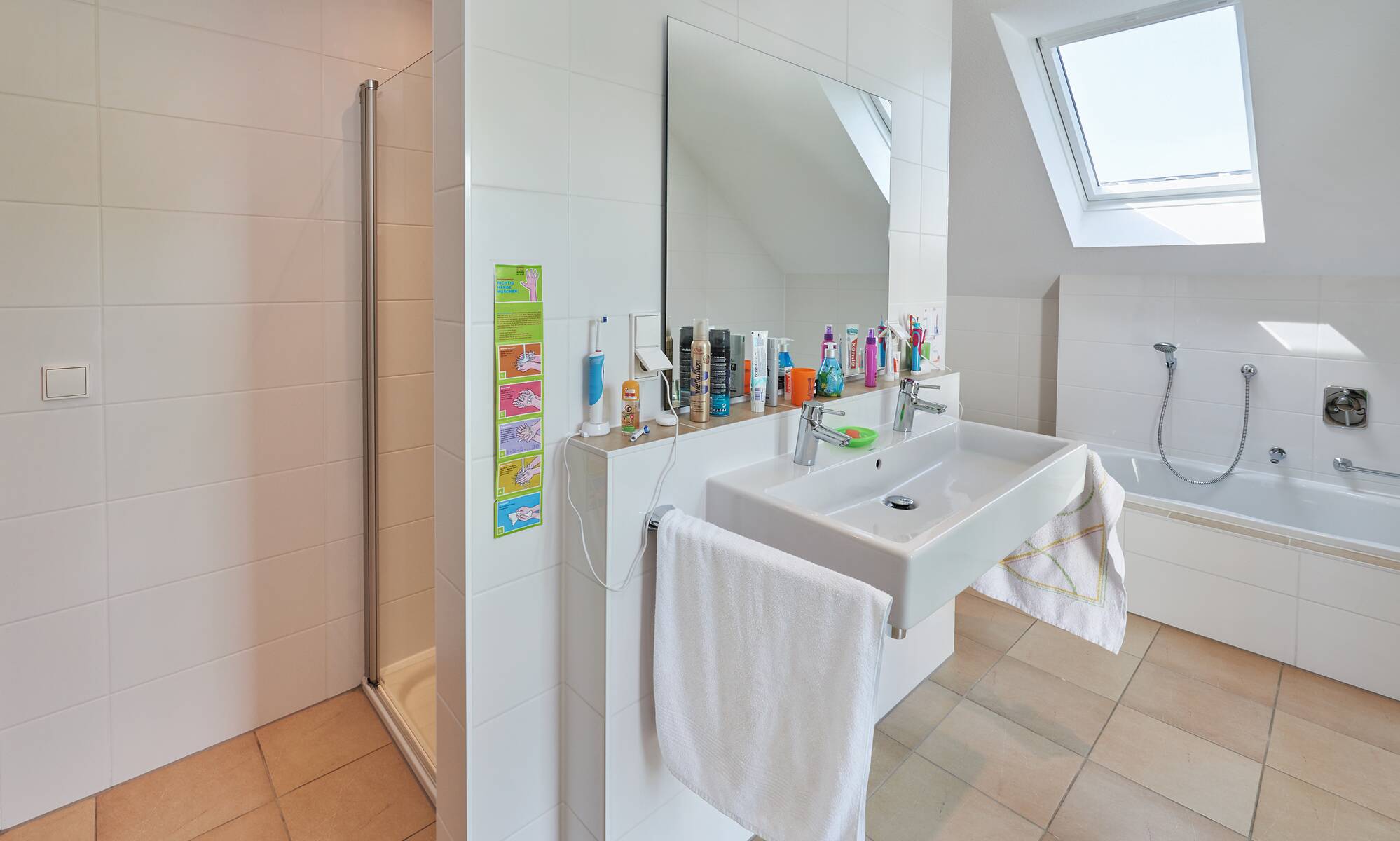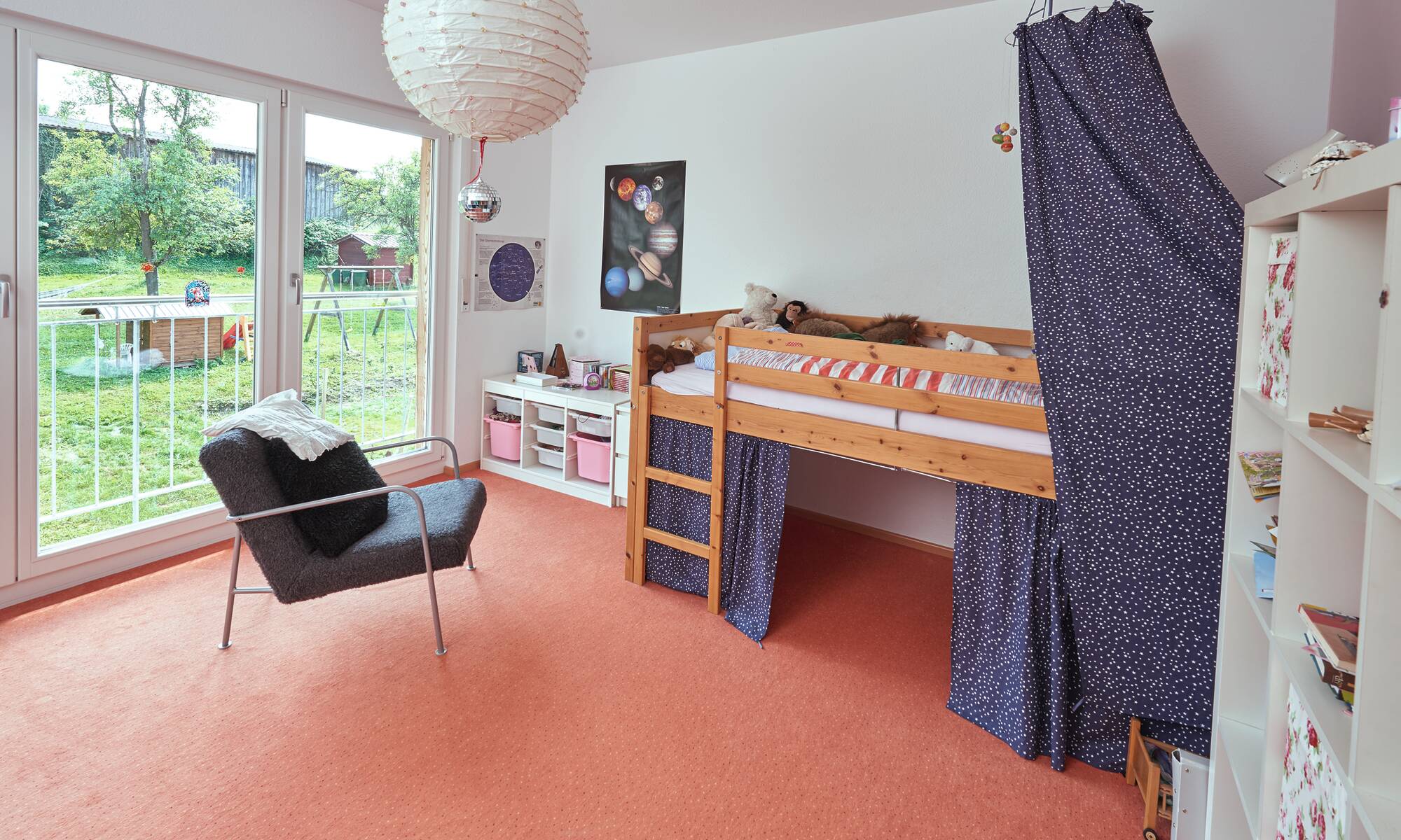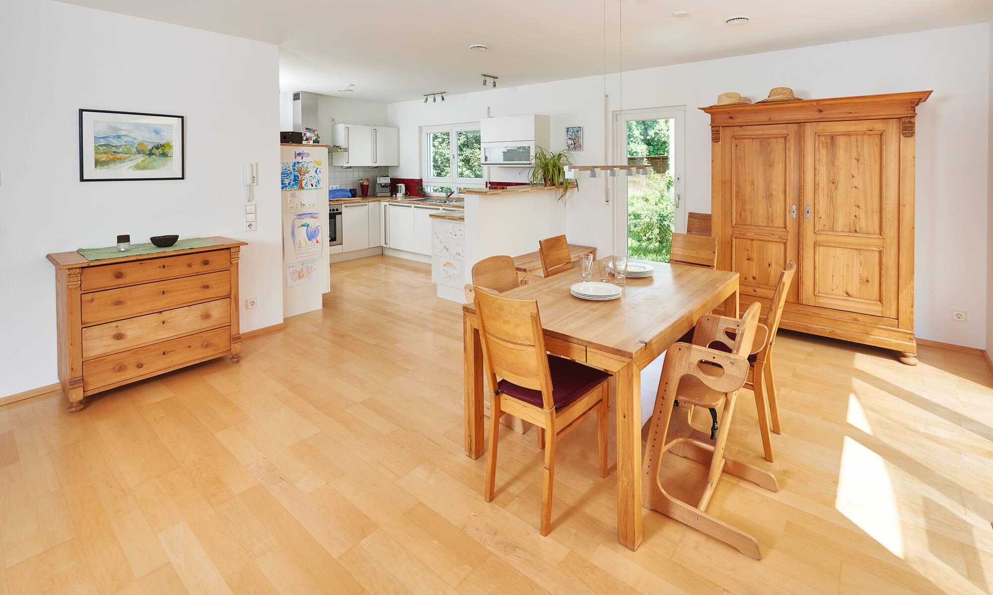 Für die Bauherrenfamilie stand immer schon der Wunsch nach einem ökologischen und energieeffizienten Haus im Vordergrund. So fanden sie bei WeberHaus den idealen Partner für ihr Unterfangen. „Mit viel Holz zu leben, das war immer unser Traum. Nun haben wir es immer um uns, in Form der Verschalung, der Bodenbeläge und natürlich der Wand an sich“, erzählt der Bauherr. Der Nachwuchs freut sich über so viel wohngesunde Natürlichkeit, und die Eltern wissen, dass die Photovoltaik-Anlage auf dem Satteldach ihres individuell geplanten Hauses ein echtes Energiewunder ist.
