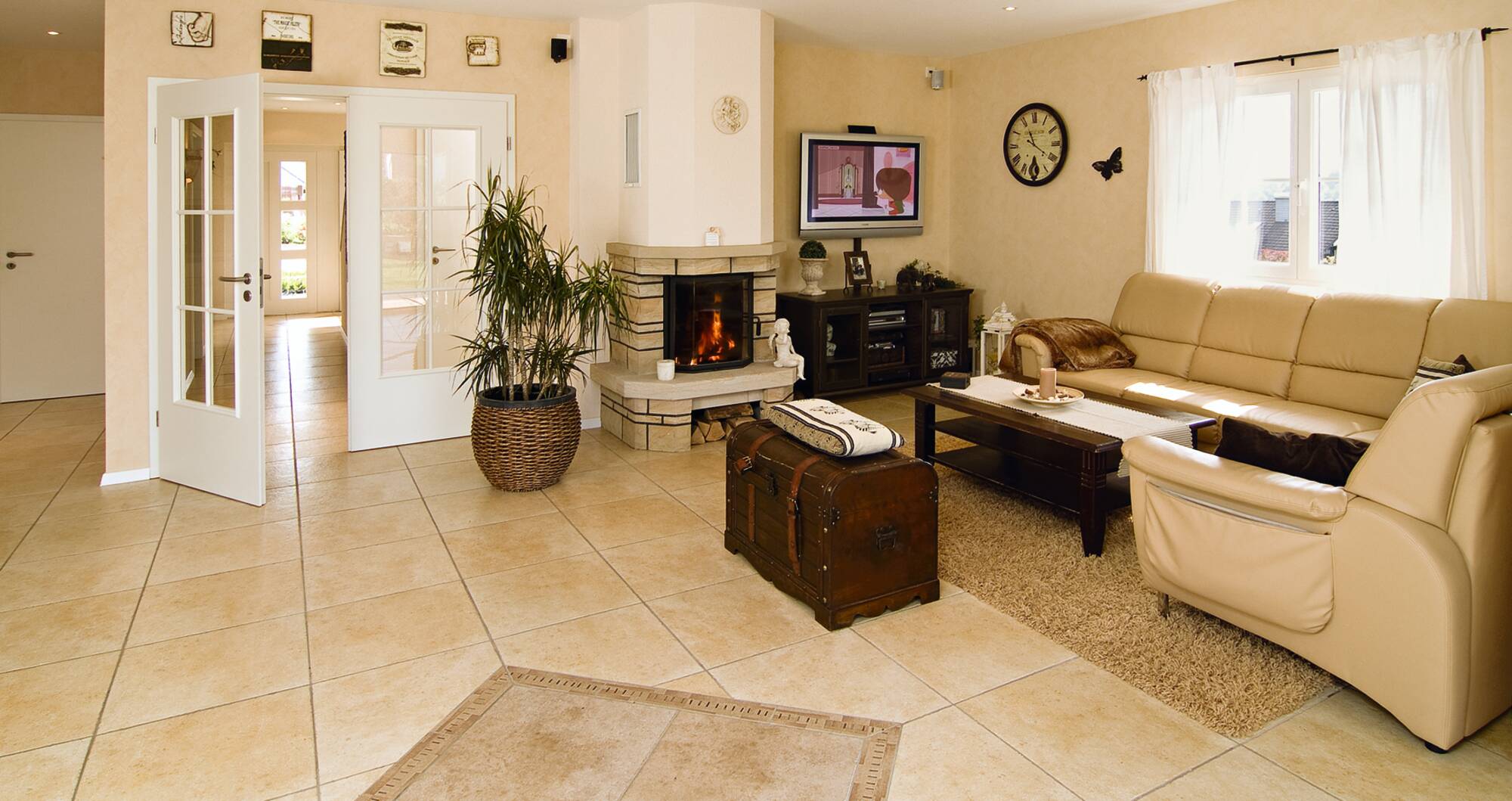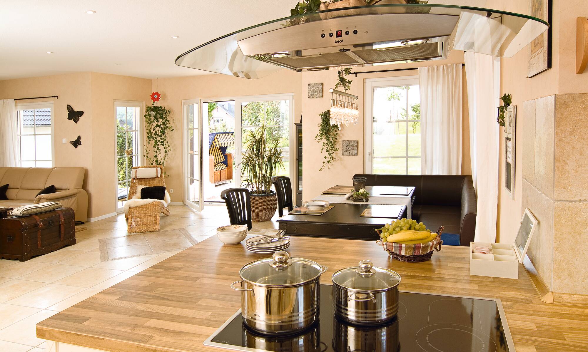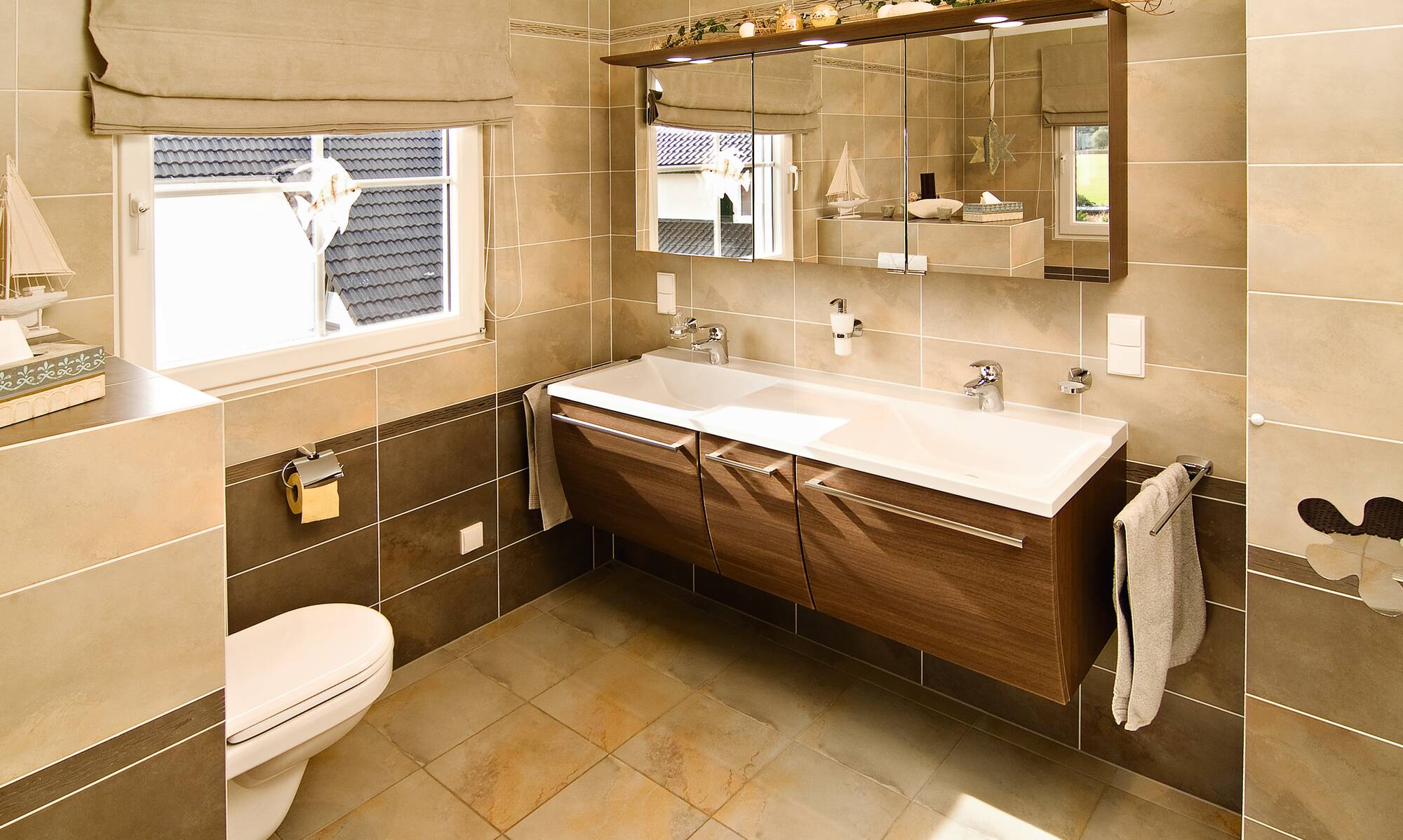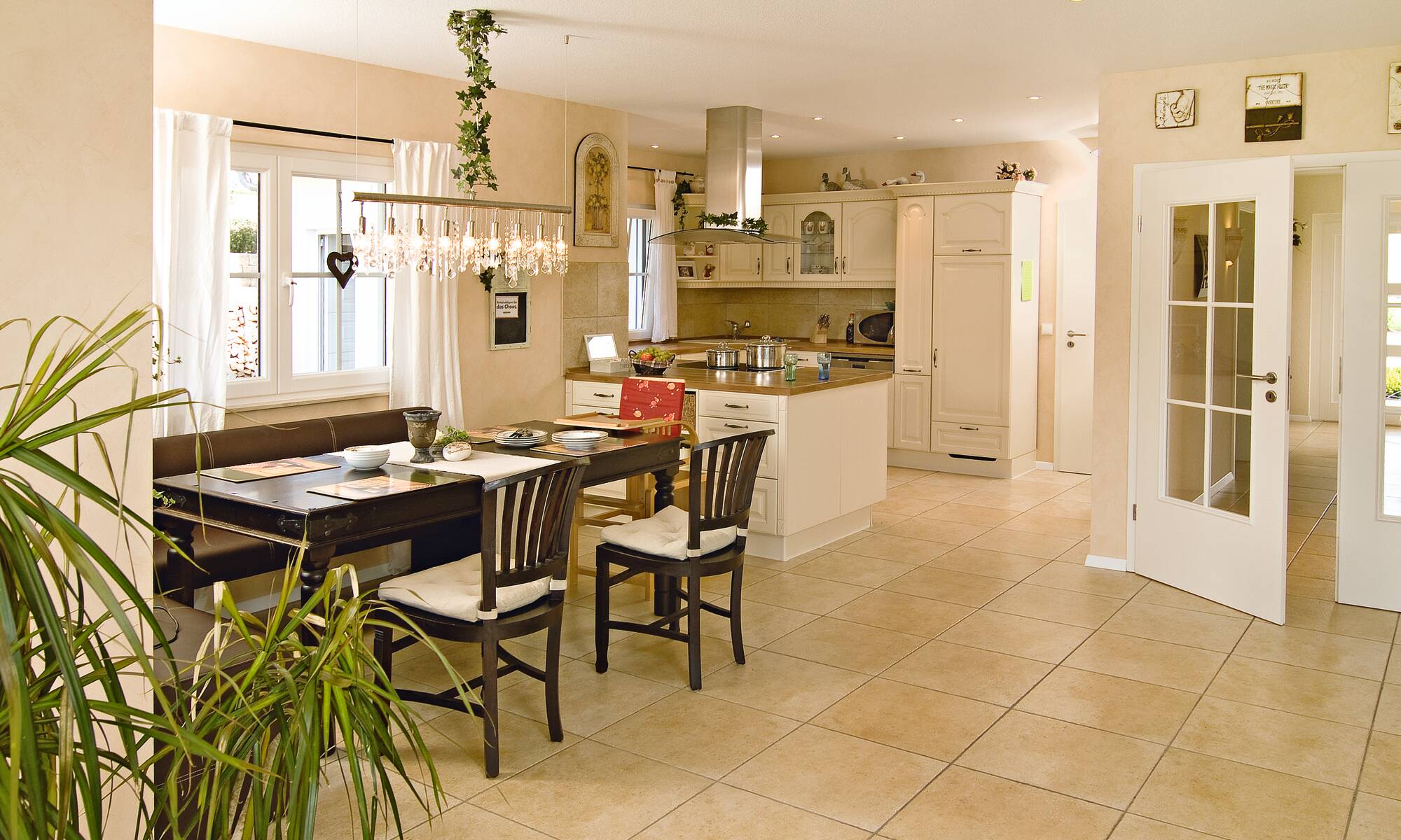 Die asiatische Architektur stand bei diesem individuellen Entwurf Pate. Das Hauseingangsportal wirkt durch die Säulen und das ausladende Vordach besonders imposant. Das Obergeschoss ist ein kleines Stück nach innen versetzt, was dem Haus Leichtigkeit verleiht. Das Innere besticht durch eine offene Gestaltung mit einem Haus Fernost. Die hochwertigen Materialien in erdigen Farbtönen machen die Wohnräume zu einer Quelle von Harmonie und Lebensfreude.