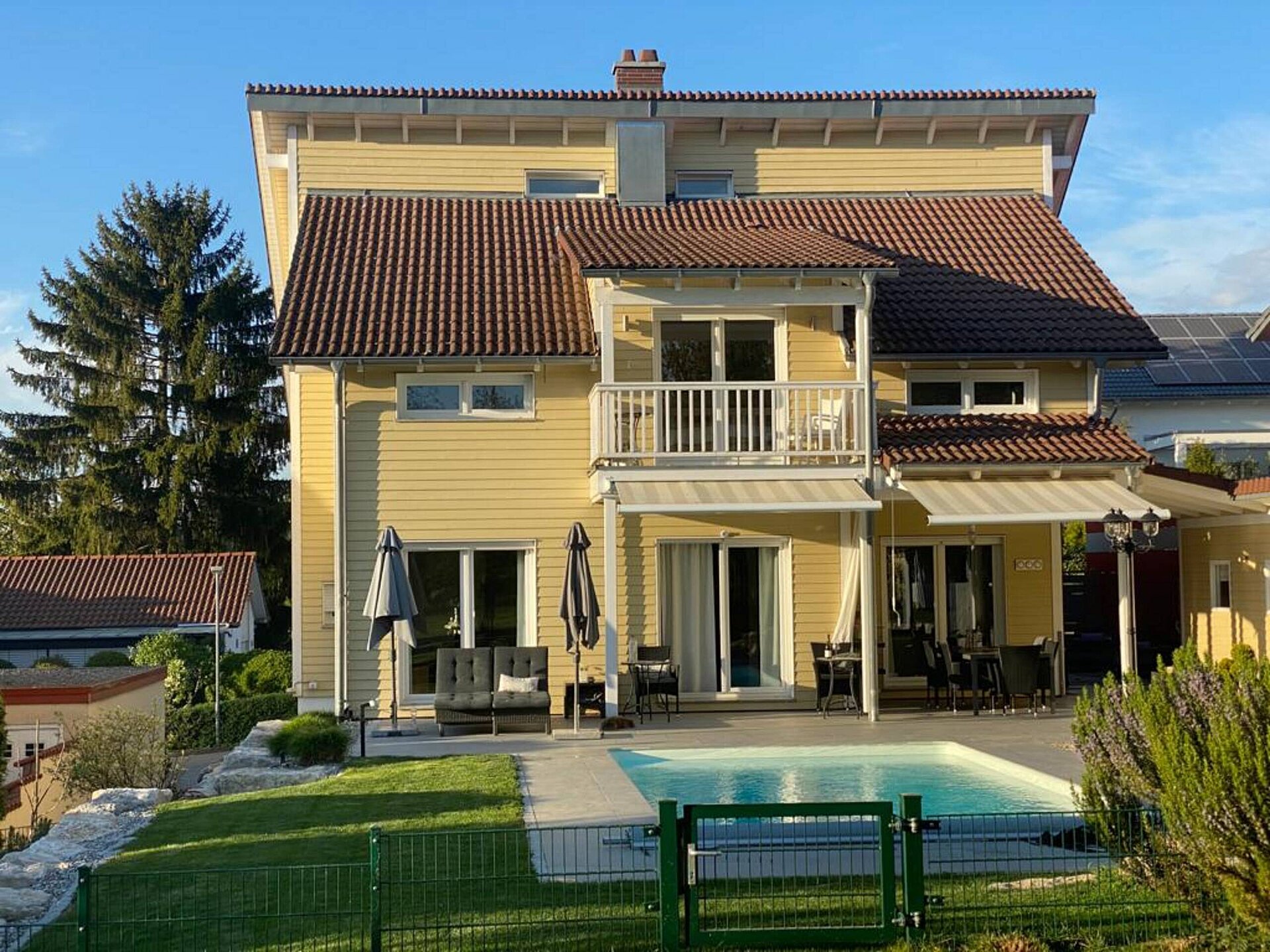 Als Frau Wäber füllt er Hallen und Säle, auch aus Radio und Fernsehen ist er bekannt: Hansy Vogt. Der sympathische Entertainer hat mit WeberHaus gebaut und ist mit seinem Haus rundum zufrieden. „Ich wollte unbedingt ein versetztes Pultdach, weil es gut aussieht und viele Möglichkeiten im Dachgeschoss bietet“, erklärt Vogt die Entscheidung für sein Haus. „Eine Kombination aus Toskana und Amerika hatten meine Frau und ich uns vorgestellt.“ Deshalb ist das Haus komplett mit Holz verkleidet und hat diese interessante Farbmischung aus elfenbeinfarbener Holzverkleidung mit weiß abgesetzten Balken.