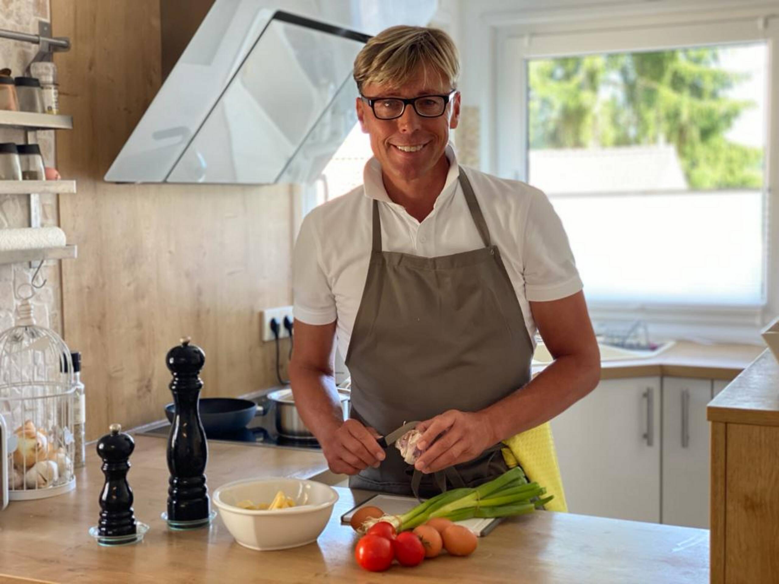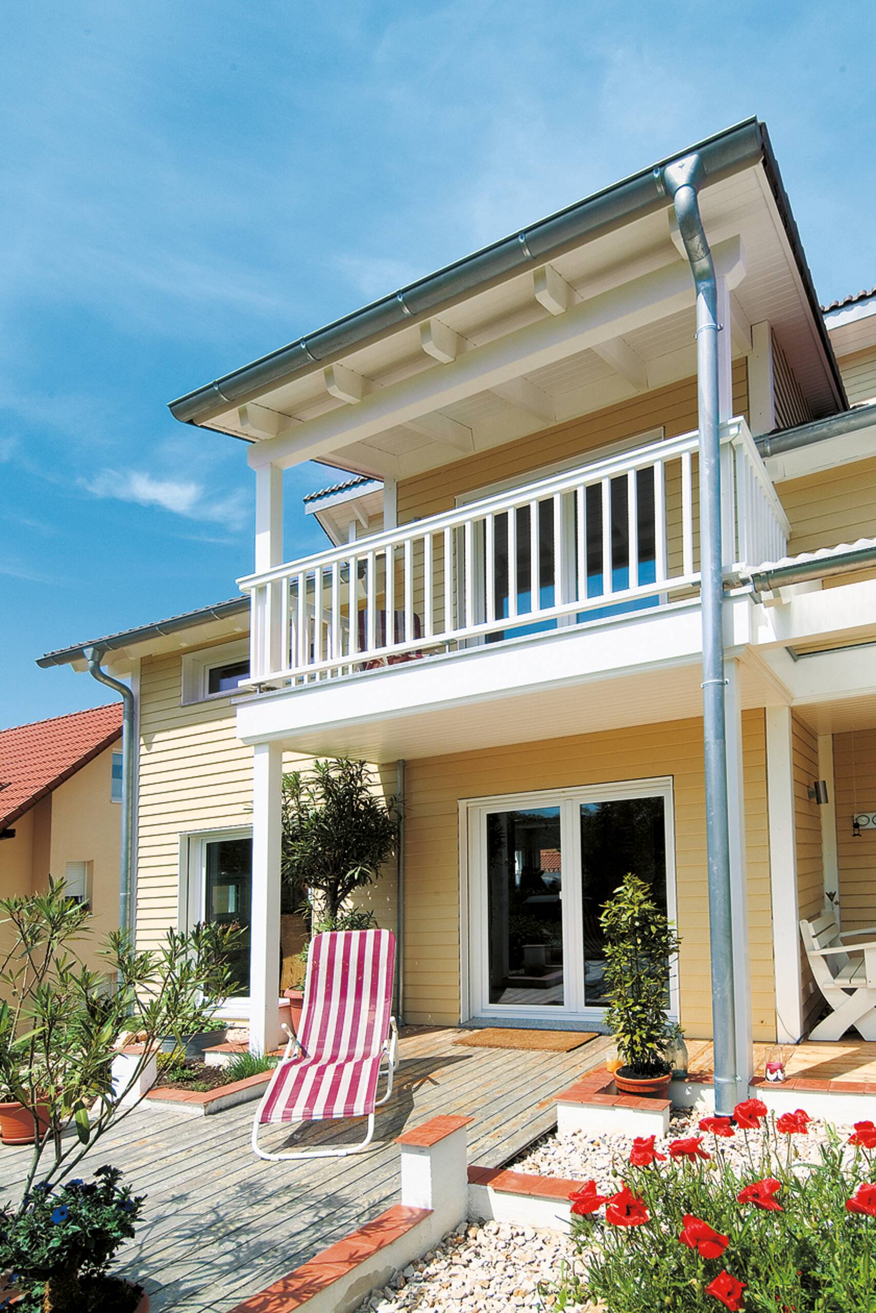 Als Frau Wäber füllt er Hallen und Säle, auch aus Radio und Fernsehen ist er bekannt: Hansy Vogt. Der sympathische Entertainer hat mit WeberHaus gebaut und ist mit seinem Haus rundum zufrieden. „Ich wollte unbedingt ein versetztes Pultdach, weil es gut aussieht und viele Möglichkeiten im Dachgeschoss bietet“, erklärt Vogt die Entscheidung für sein Haus. „Eine Kombination aus Toskana und Amerika hatten meine Frau und ich uns vorgestellt.“ Deshalb ist das Haus komplett mit Holz verkleidet und hat diese interessante Farbmischung aus elfenbeinfarbener Holzverkleidung mit weiß abgesetzten Balken.