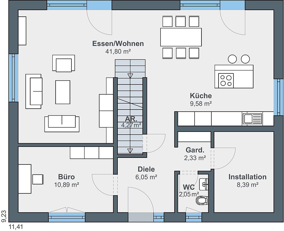 Dieses Einfamilienhaus bietet durchdachte Lösungen für komfortables Wohnen in jeder Lebensphase. Die klare Formensprache verbindet zeitlose Architektur mit nachhaltiger Bauweise, ideal für Bauherren mit Zukunftsblick. Großzügige Fenster sorgen für lichtdurchflutete Räume und ein angenehmes Wohngefühl. Durch den attraktiven Aktionspreis wird nachhaltiges Bauen mit WeberHaus besonders wirtschaftlich. Ein Einfamilienhaus, das Komfort, Umweltbewusstsein und Qualität vereint.