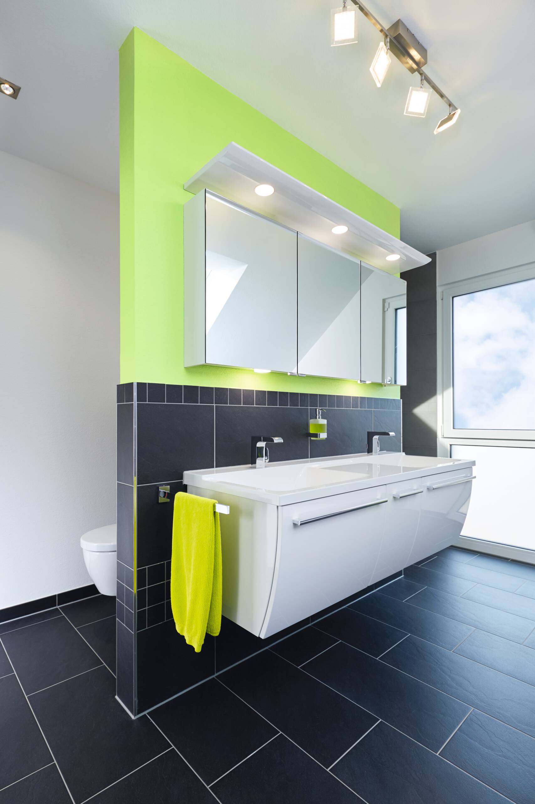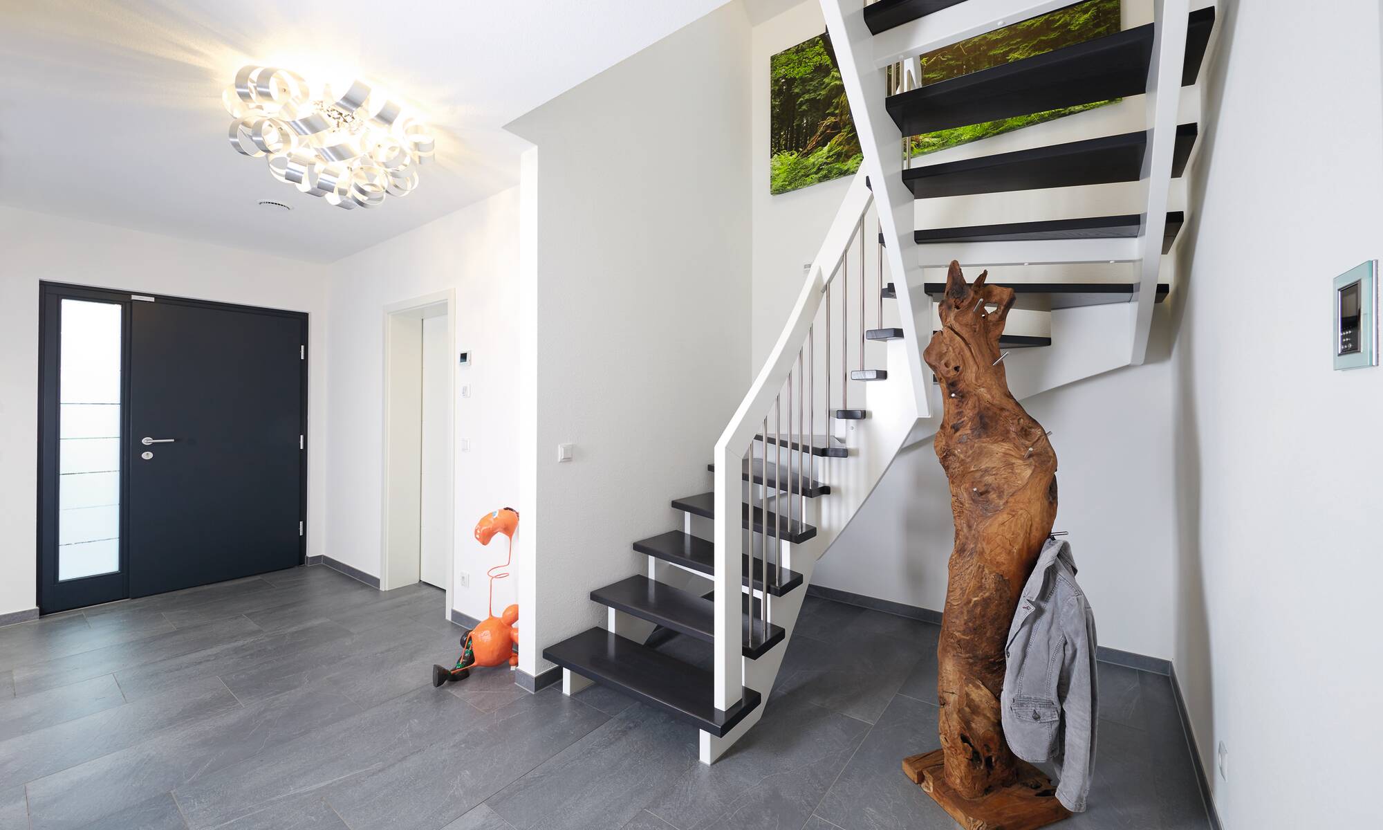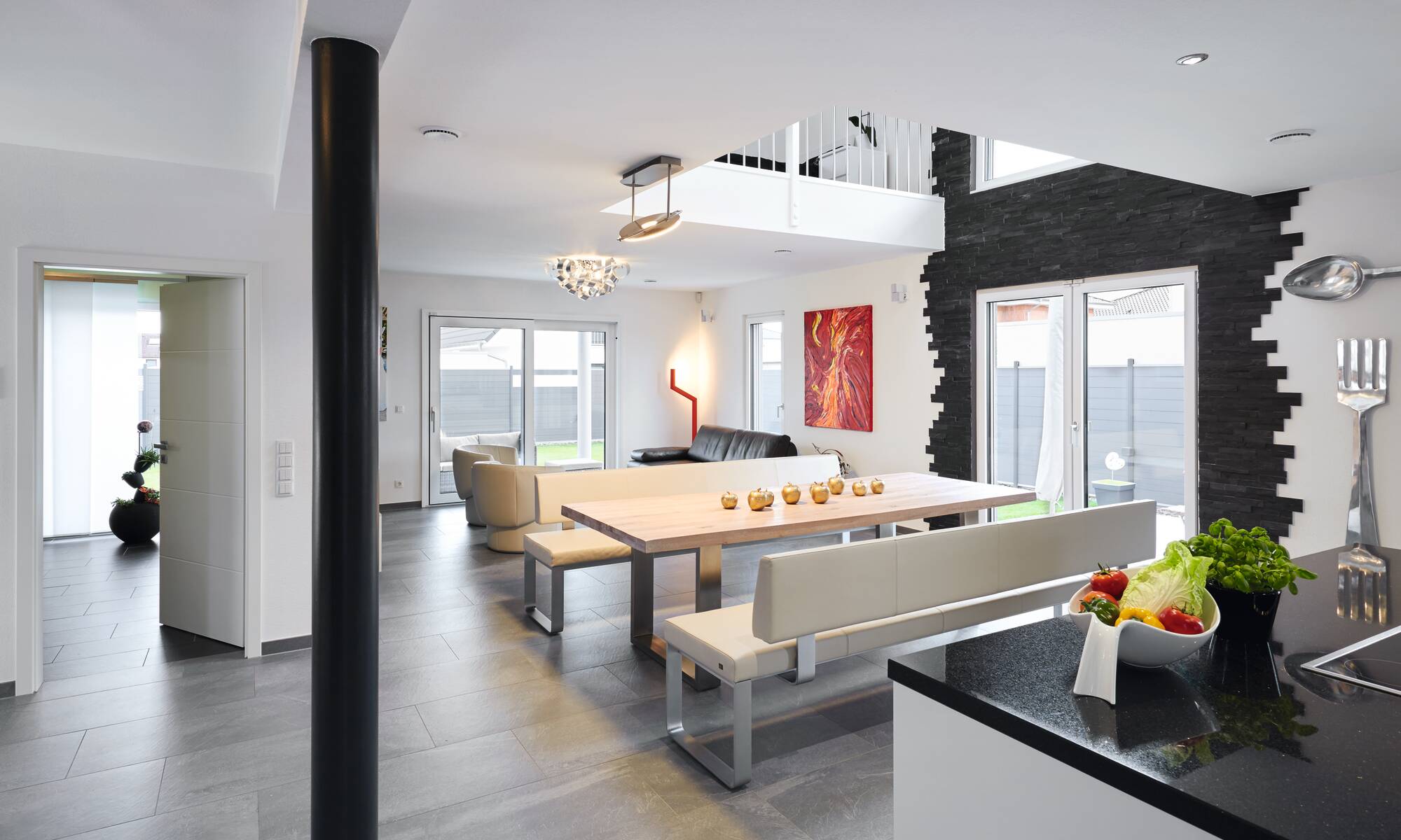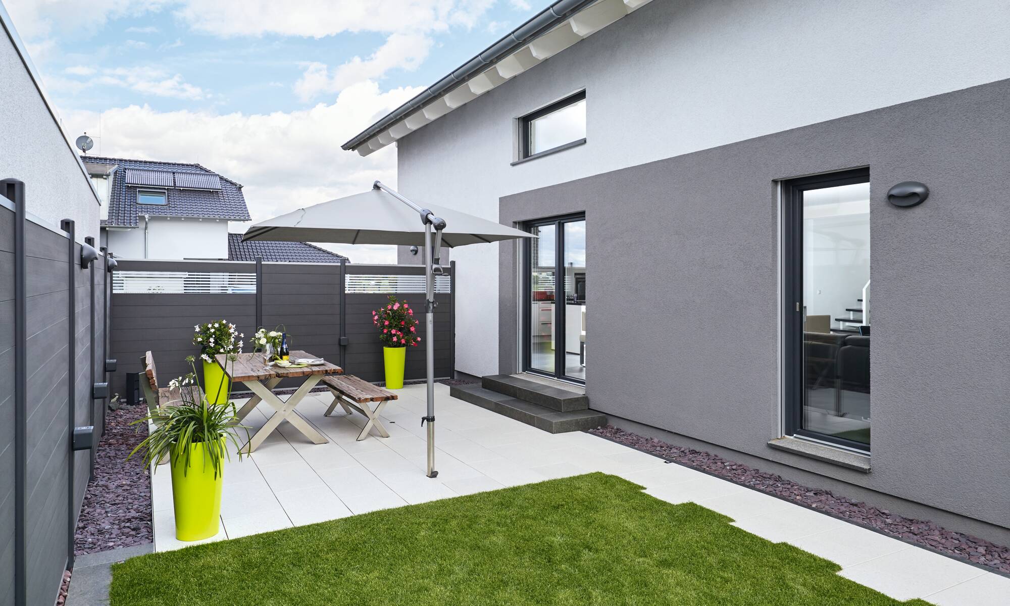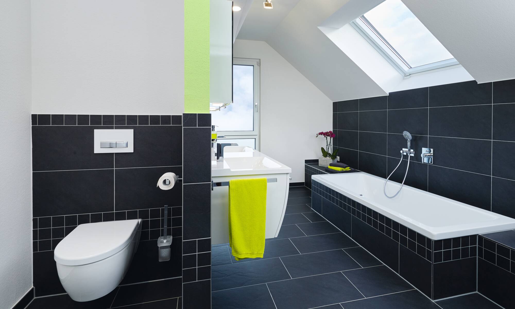 Als das Bauherrenpaar das Musterhaus in Bad Vilbel betrat, war es Liebe auf den ersten Blick: „Wir haben mit unserem Berater und dem Architekten einige Anpassungen vorgenommen, aber im Großen und Ganzen ist es das Haus geblieben, in das wir uns sofort verliebt haben“, verrät die stolze Bauherrin. Das versetzte Pultdach und die schön abgestimmten Grautöne der Fassade haben im Wohngebiet schon für viel Aufsehen gesorgt. Im Inneren des Entwurfes nach generation5.5 spiegelt sich die Persönlichkeit der Bauherren wieder. Geflieste Wandbereiche, praktische Lösungen und ein offenes Schlafzimmer sind ebenso individuell umgesetzte Wünsche wie die smarte Haussteuerung und die große Terrasse.