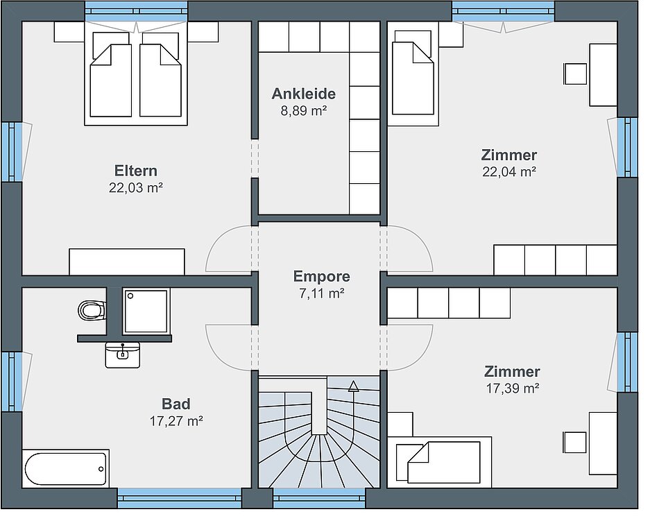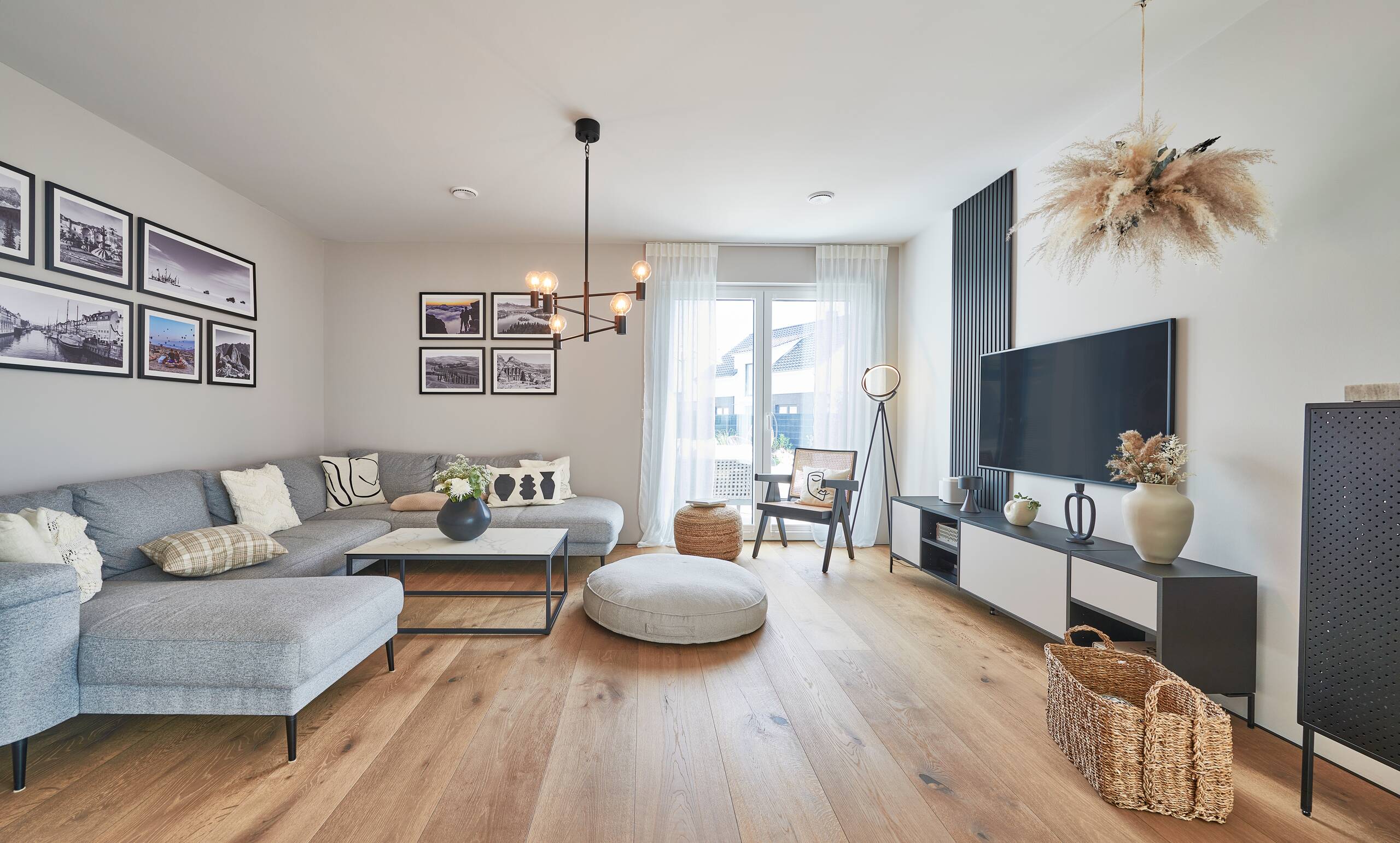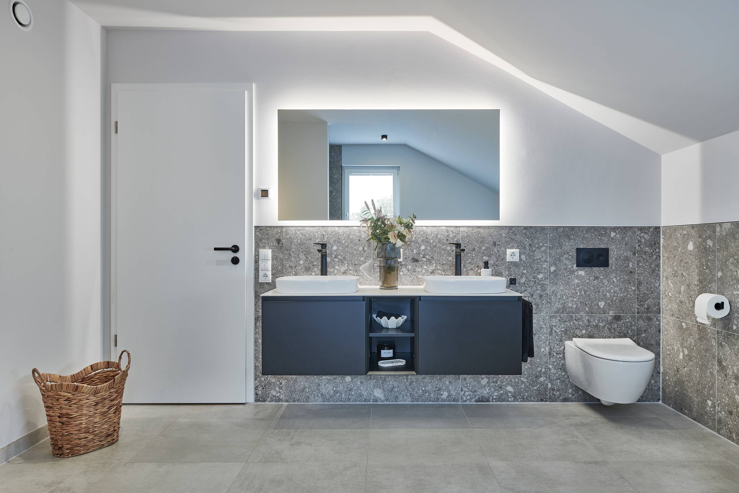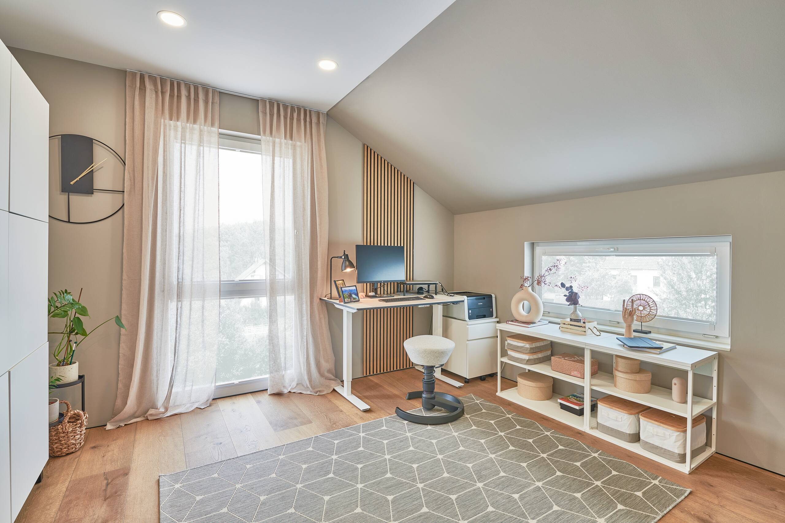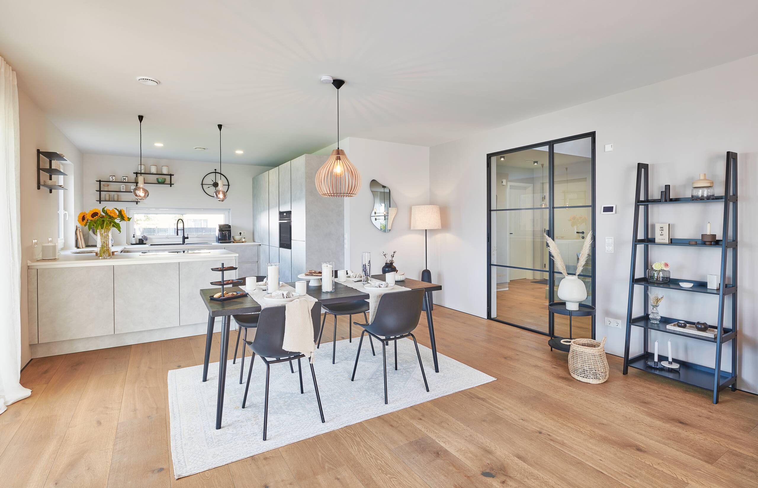 Ob mit versetztem Pultdach, Sattel-, Walm- oder Flachdach: Die extragroße Variante von generation5.0 sieht mit jeder Dachform schick aus. Wählen Sie nach Ihren Vorlieben und eventuellen Bauvorschriften. Über die optischen Vorzüge hinaus ist dieser Entwurf mit zwei vollwertigen Wohnebenen ideal für alle, die es schön großzügig mögen. Sage und schreibe 193 Quadratmeter warten darauf, von Ihnen gestaltet zu werden. Absolutes Highlight ist zweifellos der geräumige Wohn-Essbereich im Erdgeschoss, auf Wunsch mit offener oder geschlossener Küche.