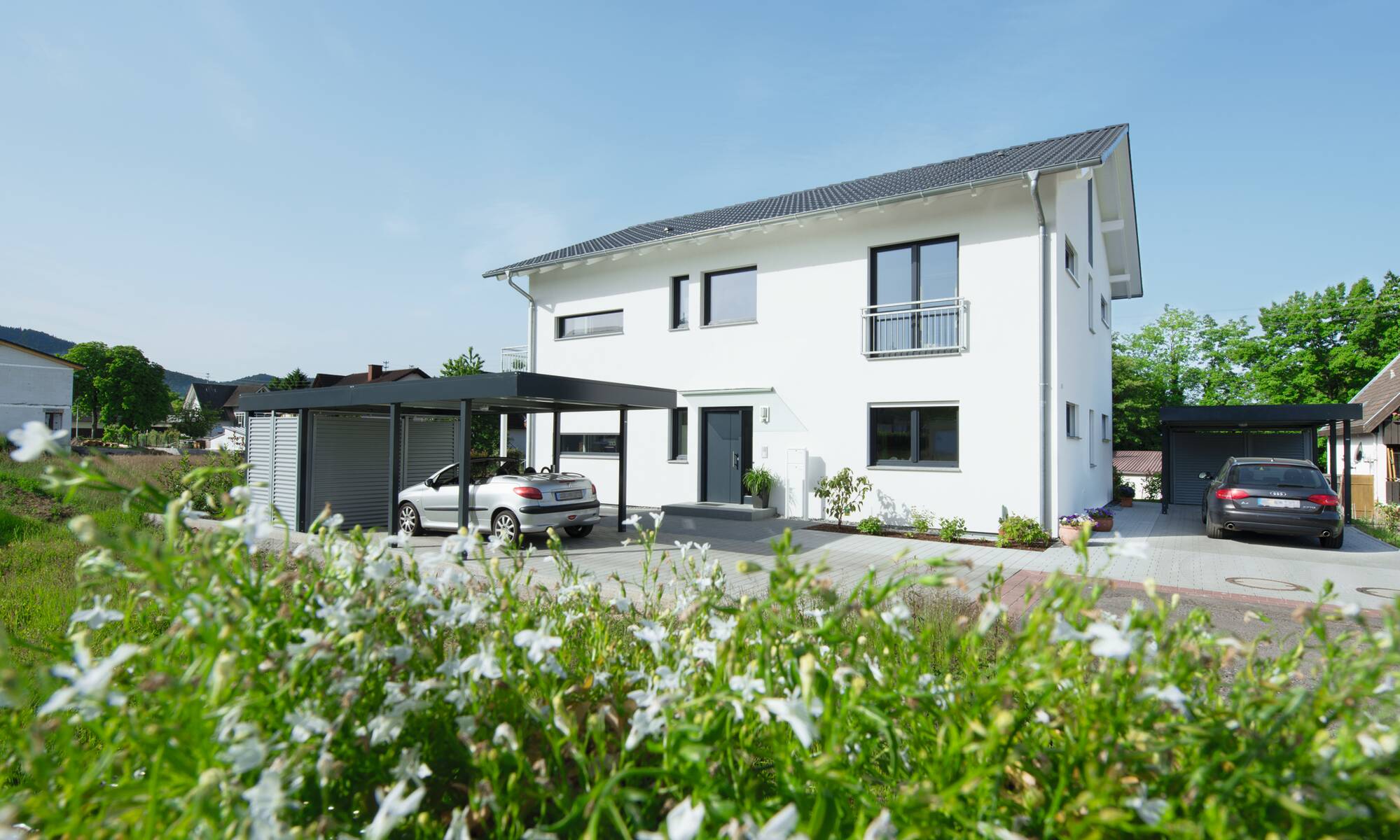 Konventionell hatten beide bereits schon einmal gebaut. Als es Zeit für ein neues Haus war, das als Kapitalanlage genutzt werden sollte, entschieden sich die Bauherren aus Süddeutschland für WeberHaus – und haben es nie bereut: „Wir sind sehr zufrieden mit der Qualität und dem Service.“ Das Zweifamilienhaus beherbergt unter seinem Satteldach auf insgesamt 214 Quadratmetern Mietobjekte für zwei Wohnparteien.