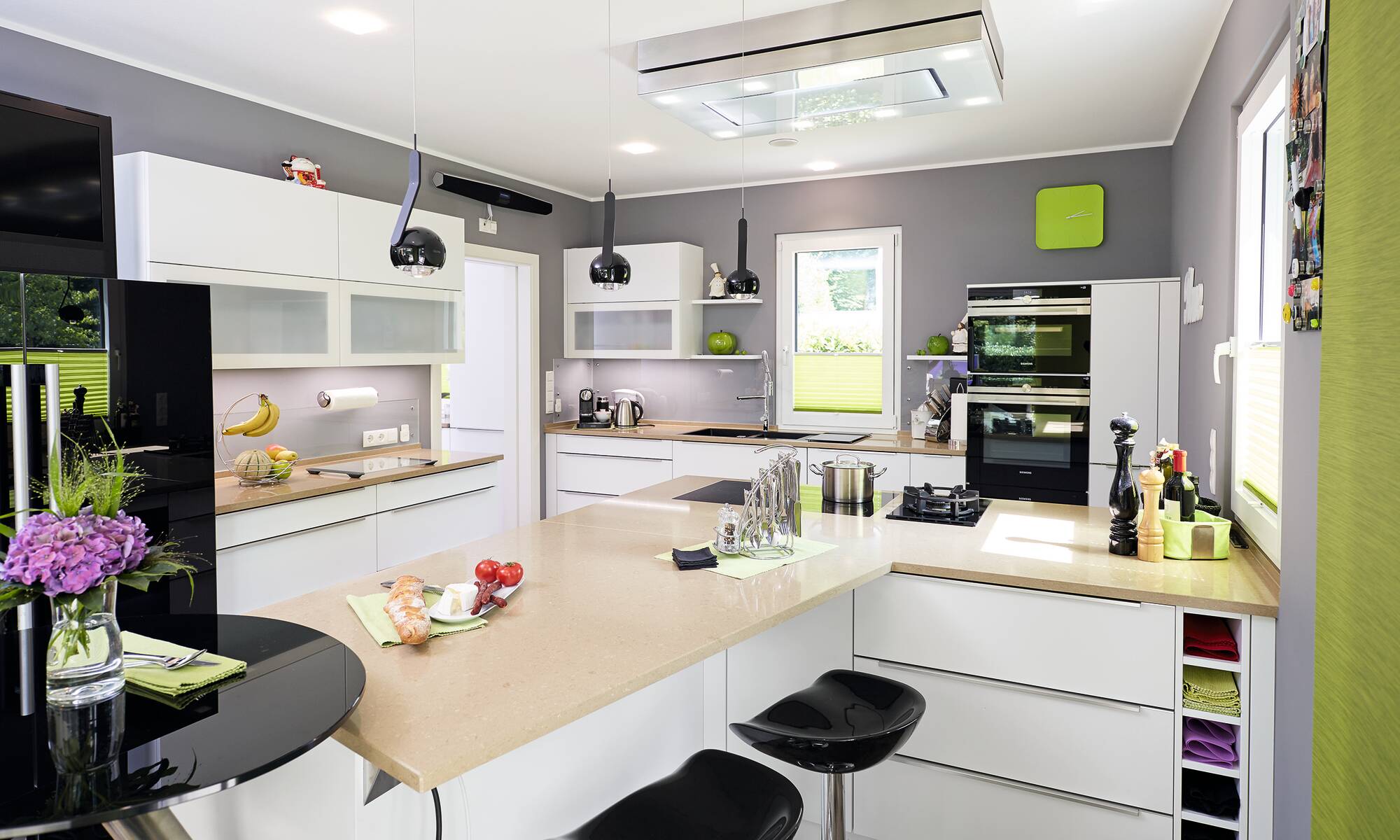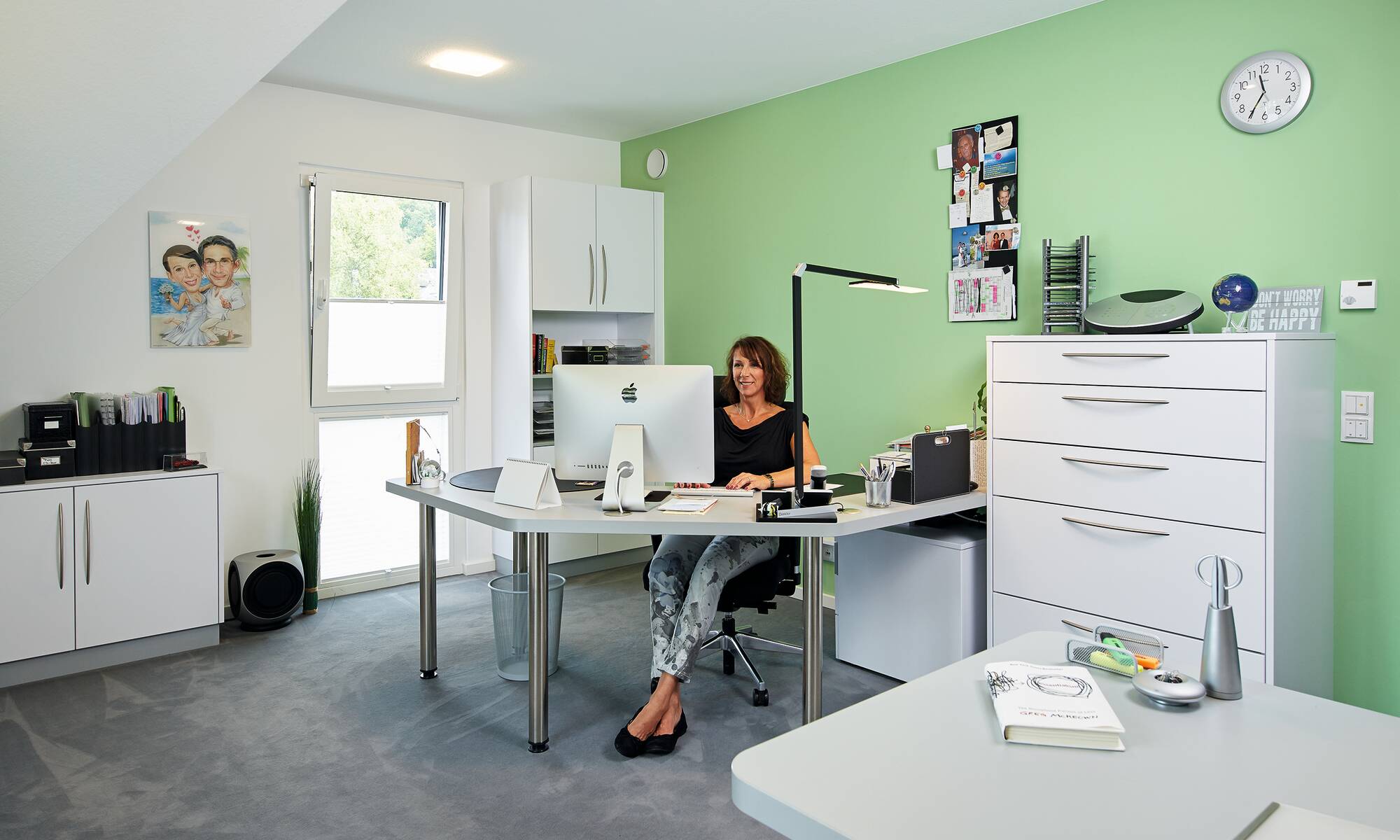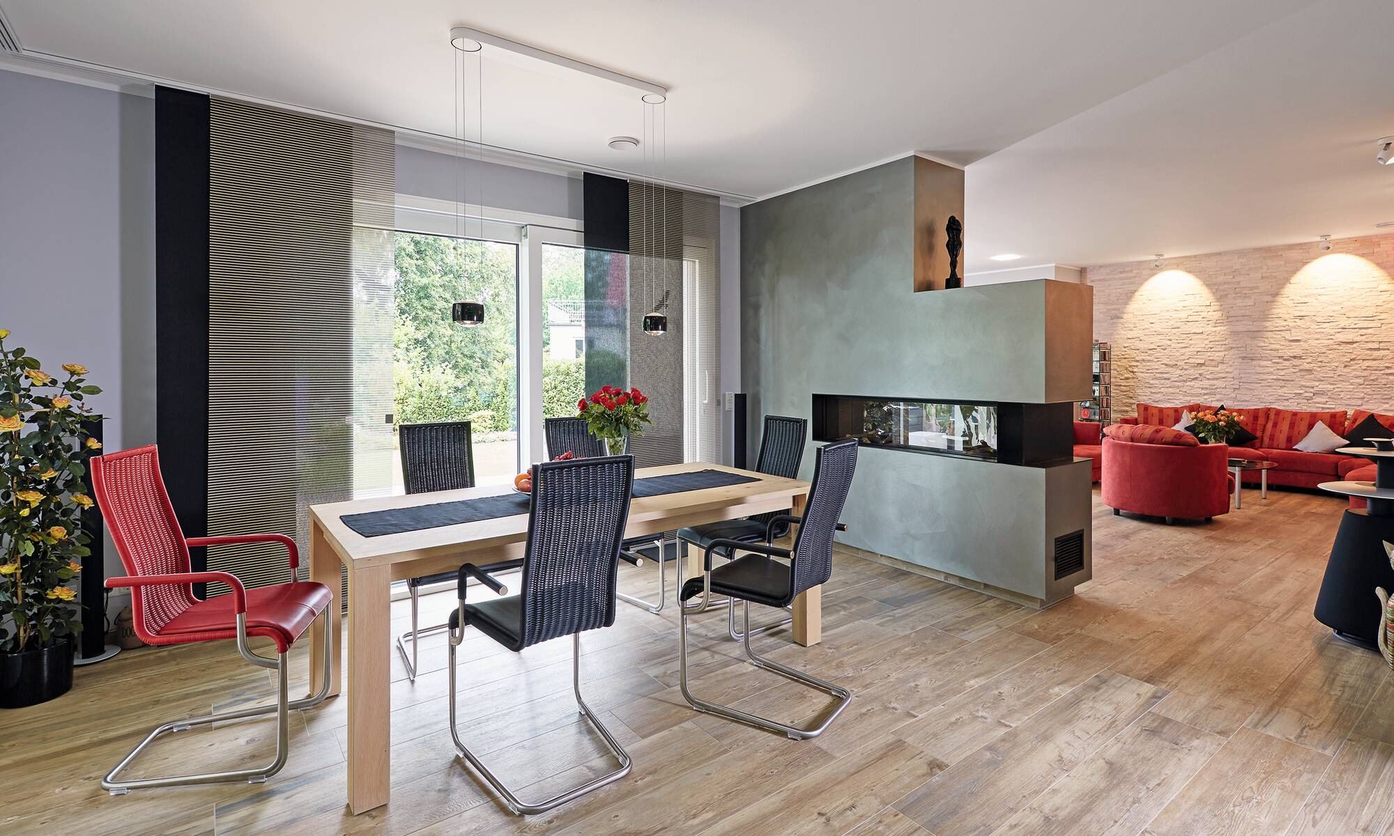 Mit diesem frei geplanten Architektenhaus hat sich das Bauherrenpaar ihre Wohlfühloase erschaffen. Es verfügt über drei Giebel, zwei Balkone, eine Garage sowie einen Wohnkeller. Das steile Satteldach in Kombination mit dem hellgelben Putz und den anthrazitgrauen Fensterahmen und Ziegeln verleiht dem Eigenheim ein modernes Aussehen.