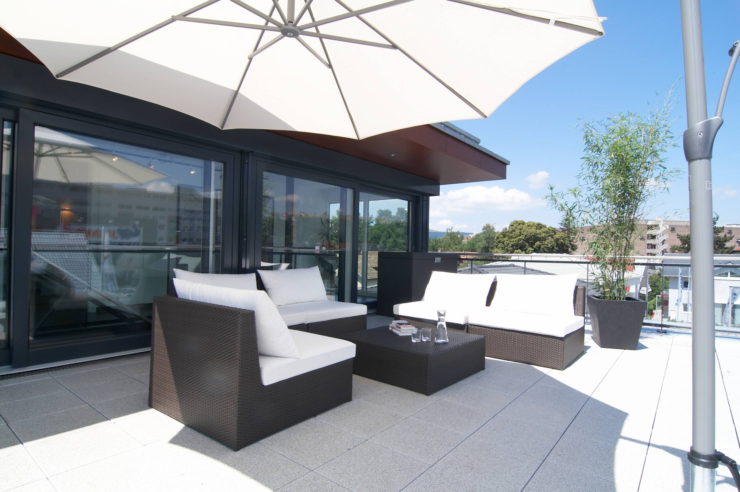 Zusätzlich bildet das Attika-Geschoss mit seiner Dachterasse einen attraktiven Rahmen für Gespräche mit Kunden und Interessenten. Das Schweizer WeberHaus-Team um Vertriebsleiter Alexander Schilling verfügt bereits über jahrelange Erfahrung im schweizer Hausmarkt. "Mit dem Ausstellungshaus in Suhr sind wir an insgesamt sechs Standorten in der Schweiz vertreten. Mit unserer Erfahrung können wir die Kundenwünsche optimal umsetzen", so Alexander Schilling.