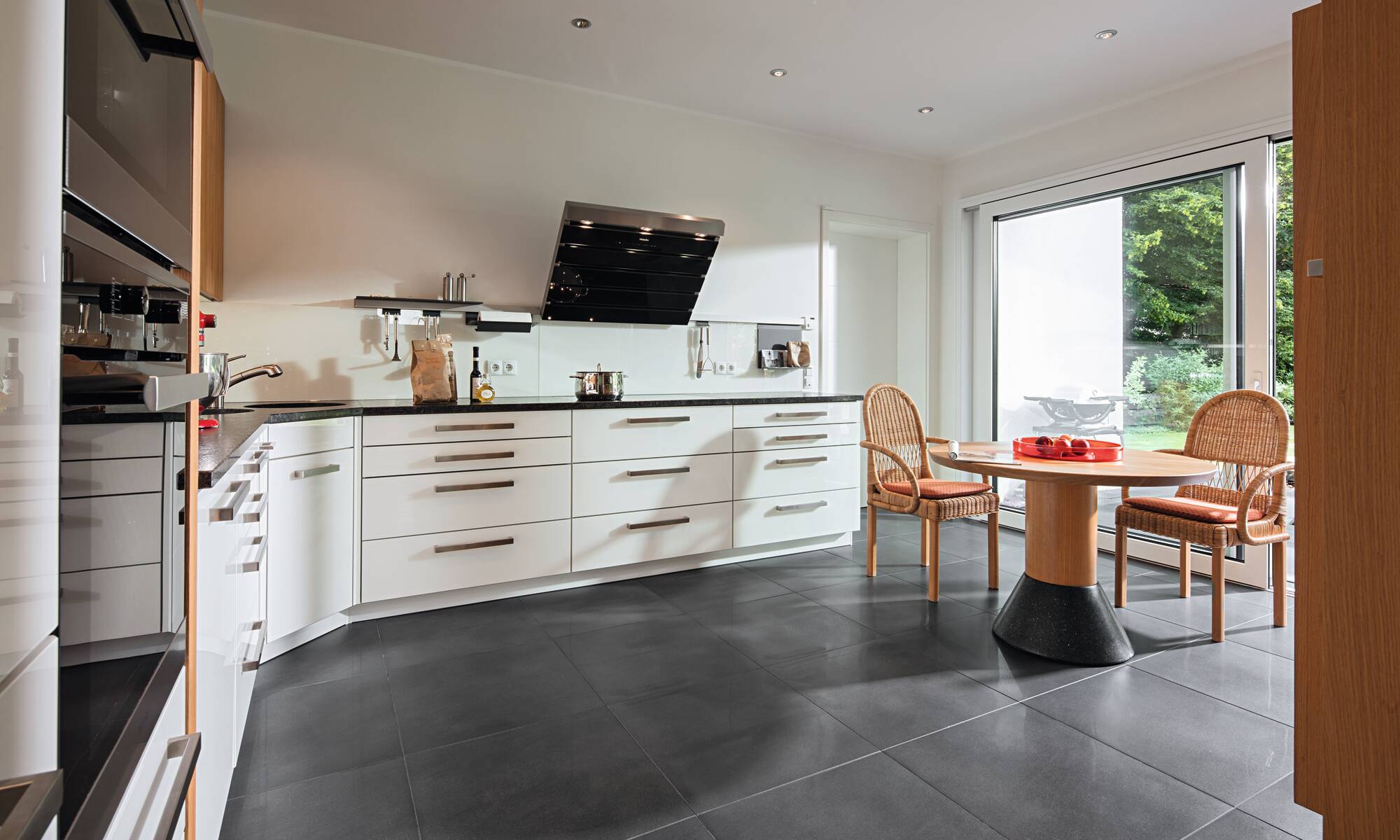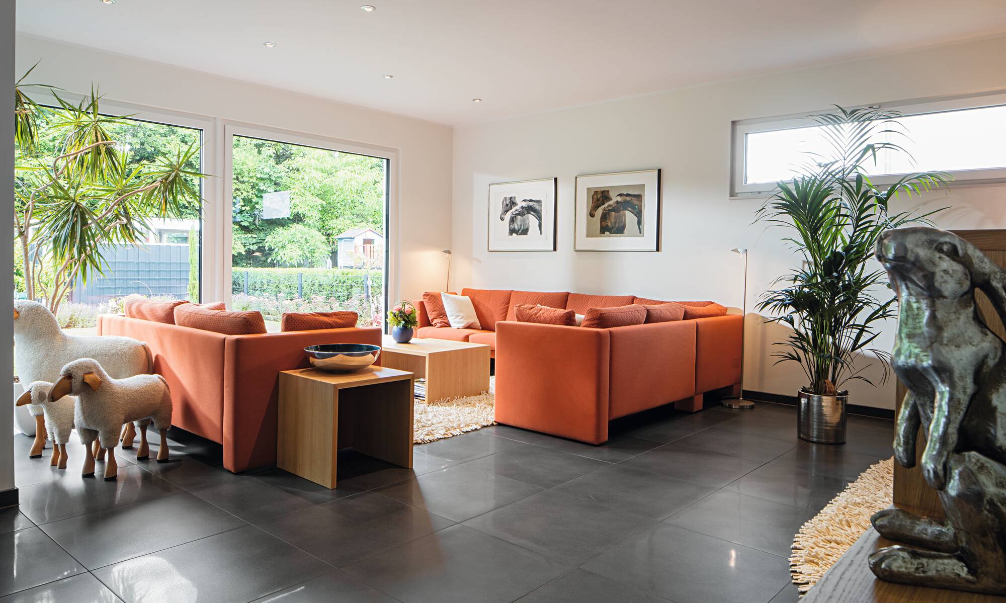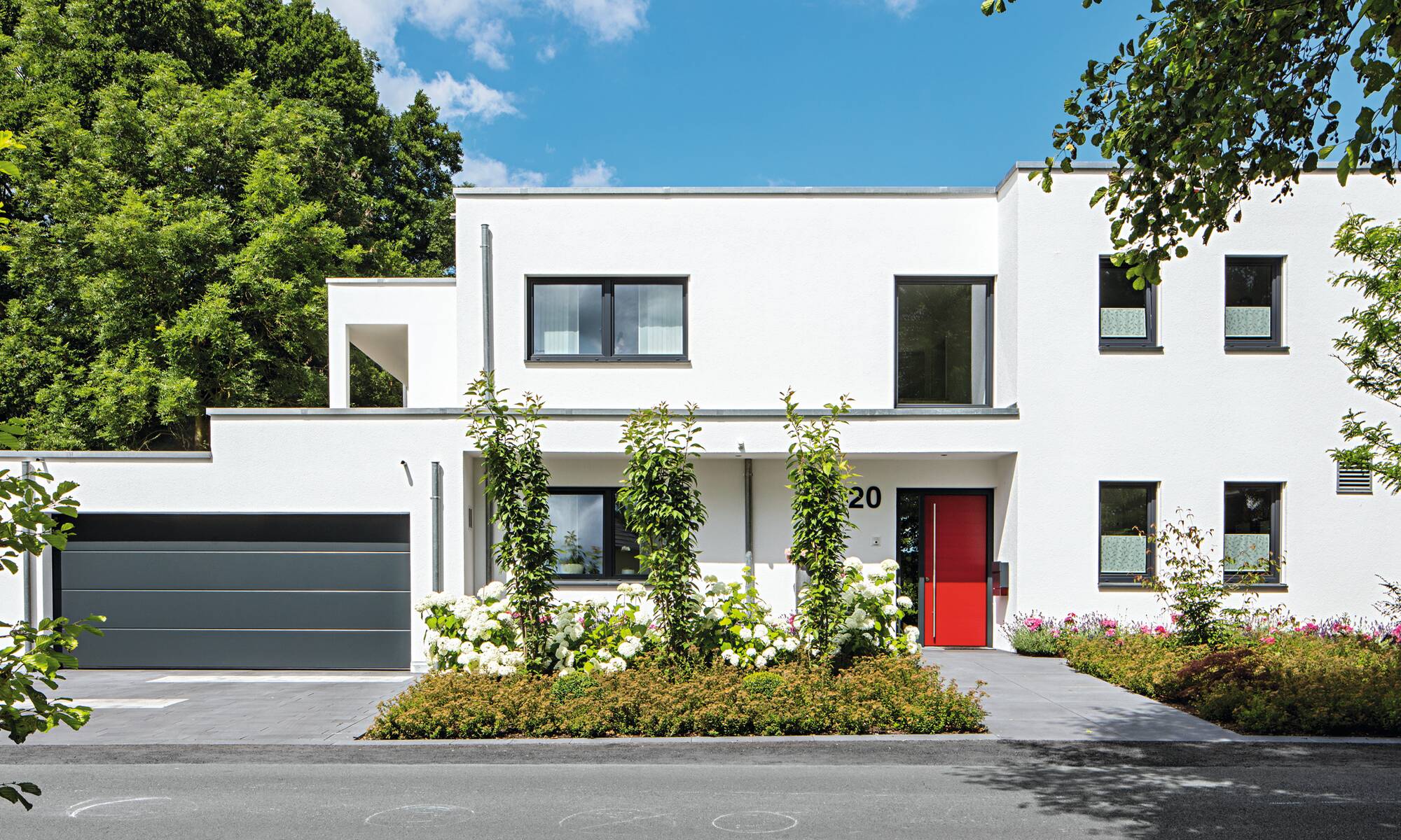 Klar in der Bauweise, ohne viel Schnörkel präsentiert sich dieses Architektenhaus mit viel Glas. Bei der Planung hatte das Bauherrenpaar aus dem Münsterland konkrete Vorstellungen. Es sollte ein Haus für die Zeit nach dem Auszug der Kinder sein. Praktisch denken, aber gleichzeitig ästhetisch, lautete die Devise. Ein schmuckes Traumhaus ist entstanden.