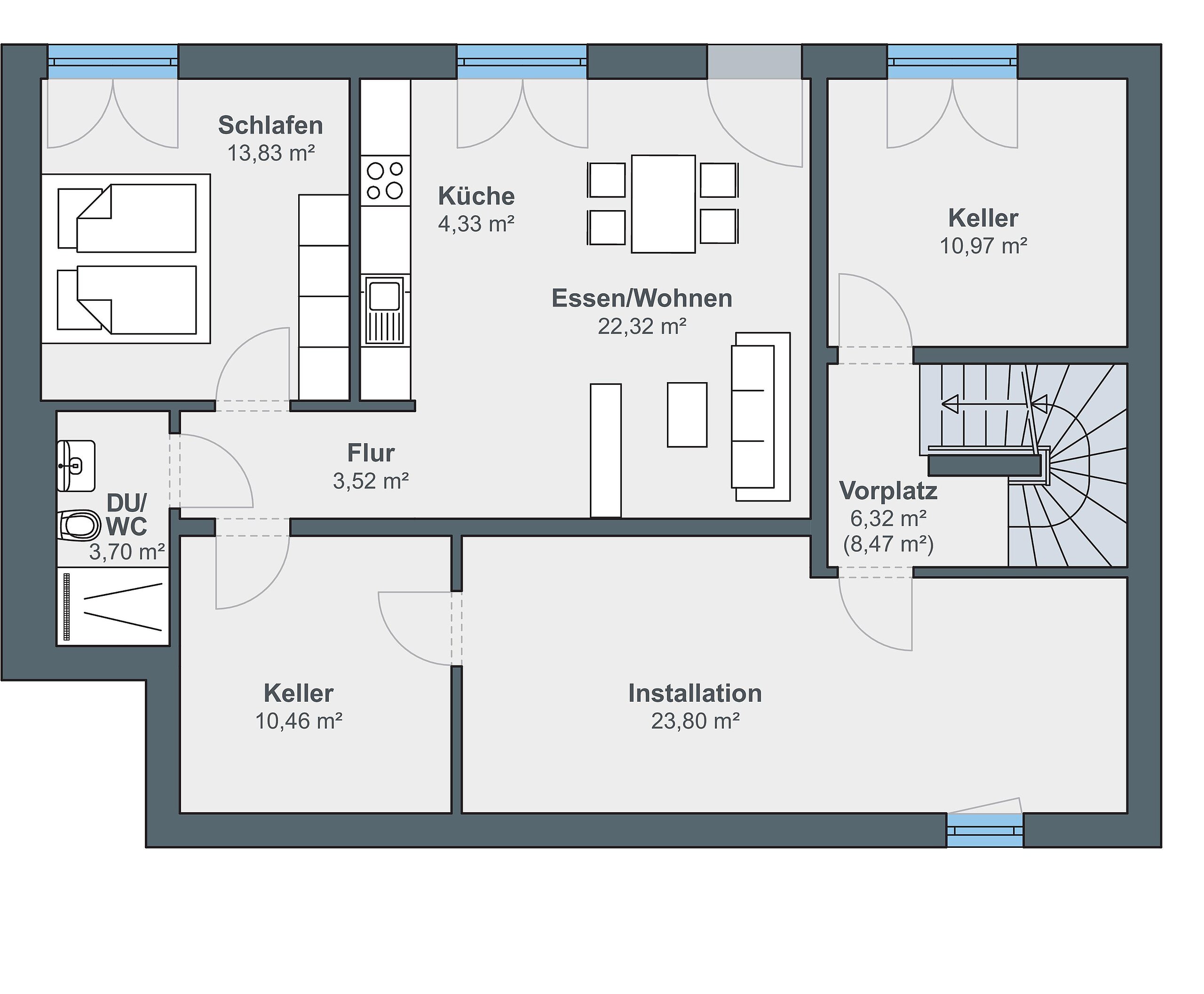 Das Untergeschoss, dass sich dank der Hanglage ebenso hell und freundlich präsentiert wie die oberen Etagen, beherbergt neben Abstell- und Technikräumen auch eine Einliegerwohnung, die derzeit aber noch nicht vermietet ist. „Auch im Kellergeschoss haben wir darauf geachtet, dass wir den vorhandenen Raum optimal nutzen können.“